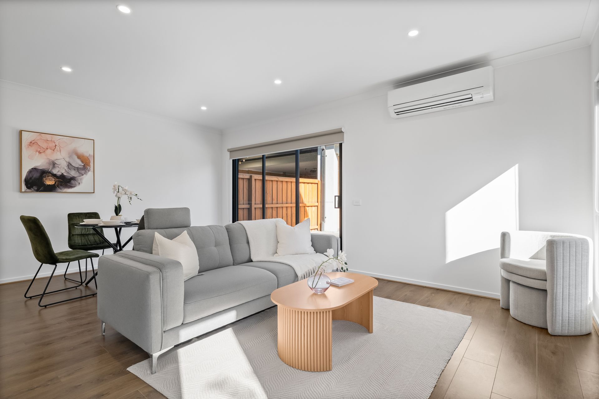 Upstairs, three well-appointed bedrooms provide comfortable accommodation, all thoughtfully designed with functionality in mind. The privately positioned main suite enjoys its own ensuite and walk-in robe, creating a peaceful escape from the rest of the home. The remaining bedrooms are serviced by a central bathroom, while a powder room downstairs adds everyday convenience for guests. Year-round comfort is assured with split system heating and cooling throughout.