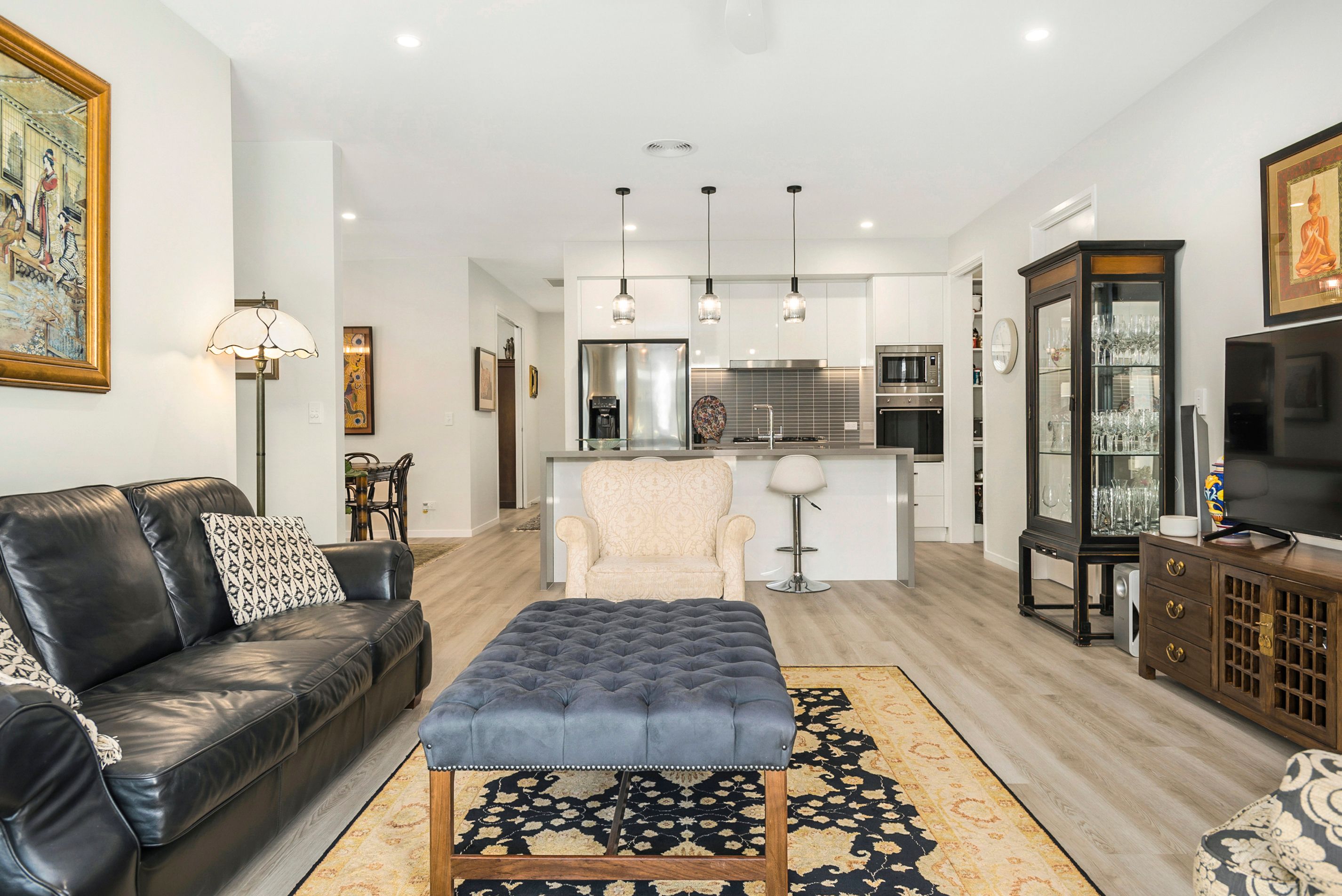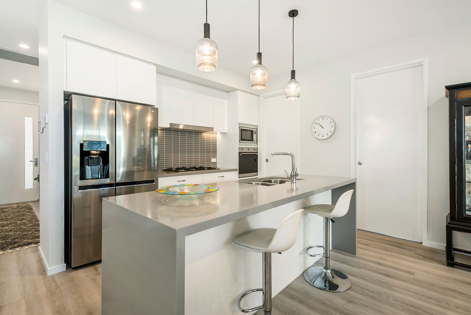 The open plan living, and dining room overlooks a paved alfresco area, a real highlight of the home. The outside of the residence also offers a more spacious layout with plenty of room around the perimeter. The kitchen is equipped with quality Smeg Stainless Steel appliances, great storage, Caesar stone bench tops plus a huge walk-in pantry. A separate laundry, again with great storage has external access.
