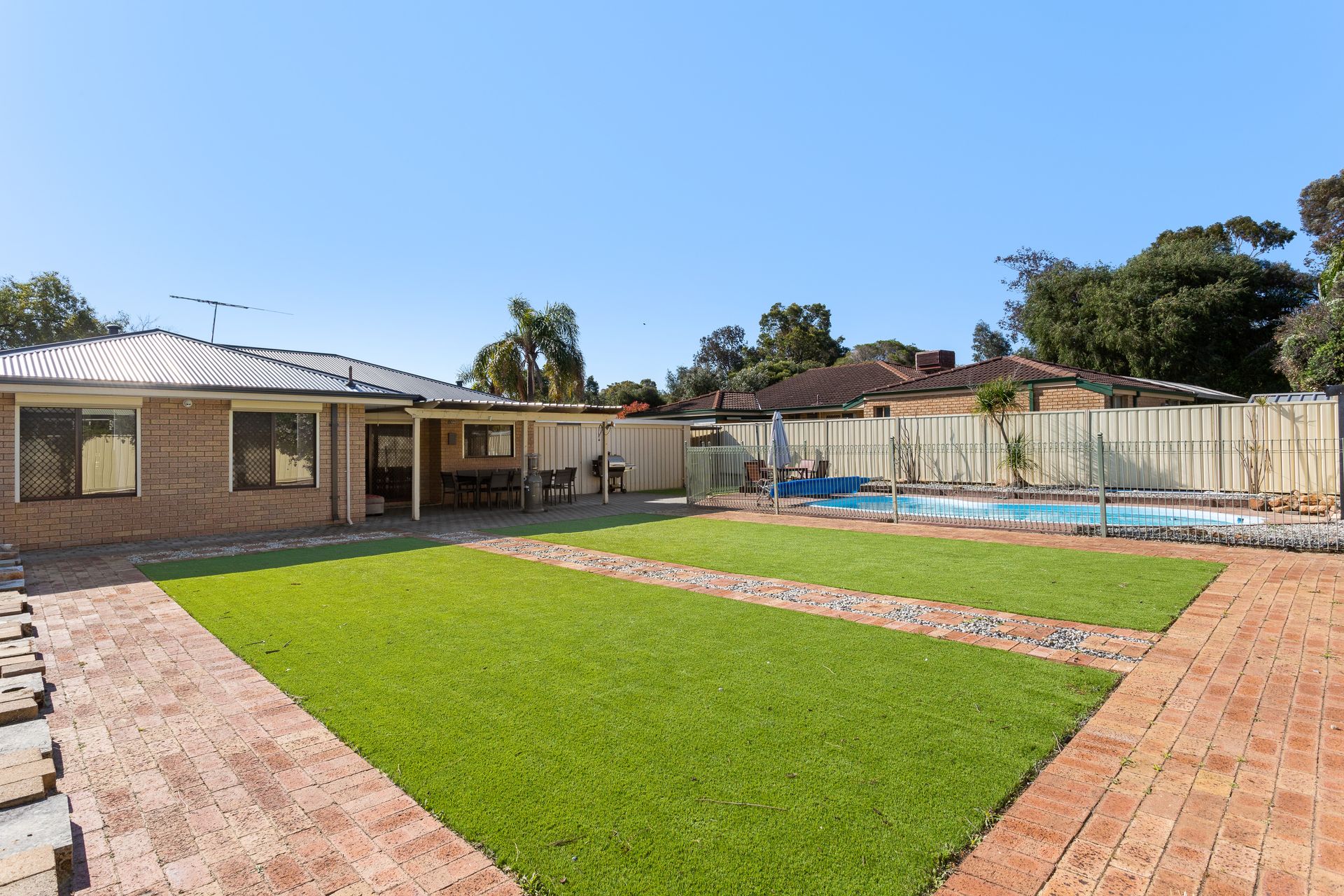 * Entrance to backyard through dining area. * Great sized under cover entertaining area all brick paved with TV antenna point. * Great sized care free artificial grassed area with feature paving in sections. * Beautiful garden beds surrounding this area along the fence with brick bordering. * Large under ground salt water swimming pool with all new filtration that is enclosed in a shed, pool blanket, surrounded by coloured concrete with feature gardens around, plenty of space to this area and is all securely fenced off. * Plenty of lighting to the whole backyard area. * Another great sized artificial grassed area to the side of the yard near the swimming pool. * Along the side of the house is concrete flooring with a storage shed. * To the other side of the home along side the garage is a good sized storage area.