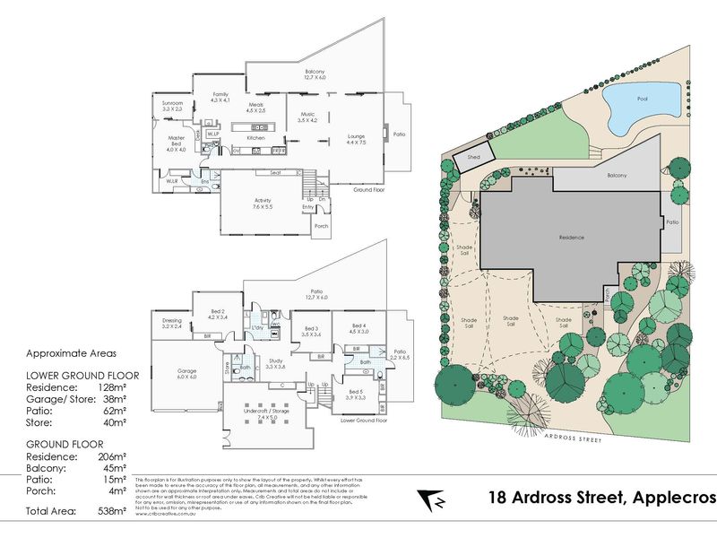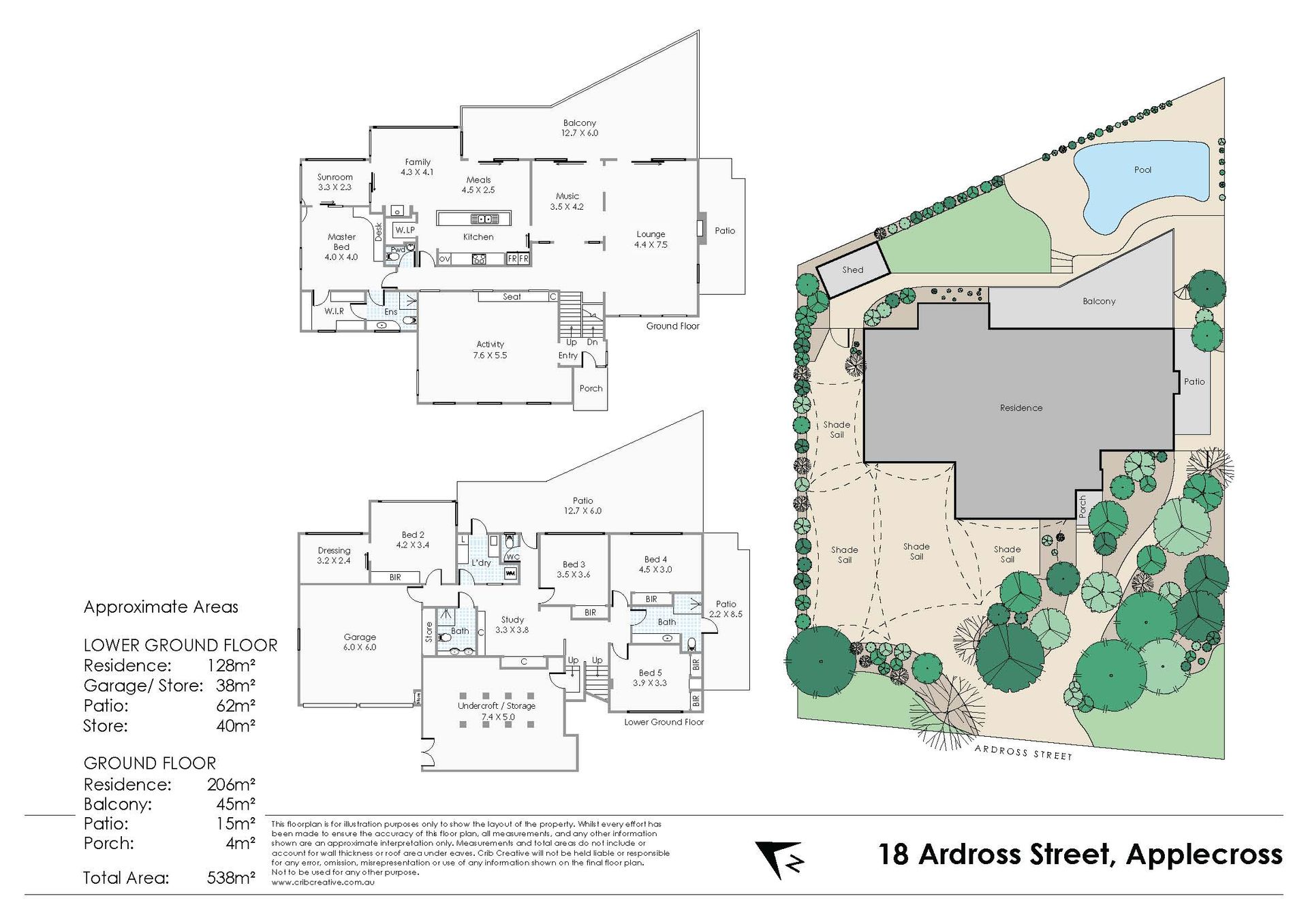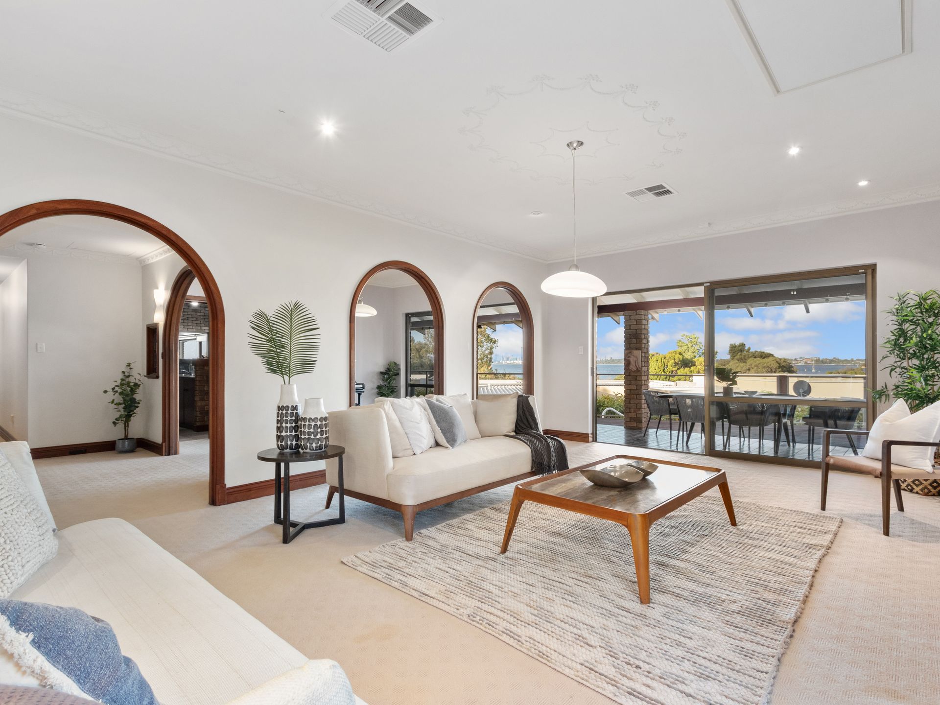 Accommodation • 5 Bedrooms • 3 Bathrooms • Study | Activity Area • Master Suite complete with WIR + ensuite and private SUNROOM with River views • Lower Level: Spacious minor bedrooms with BIR |One bedroom complete with dressing room • Modern family bathroom leading out to pool area