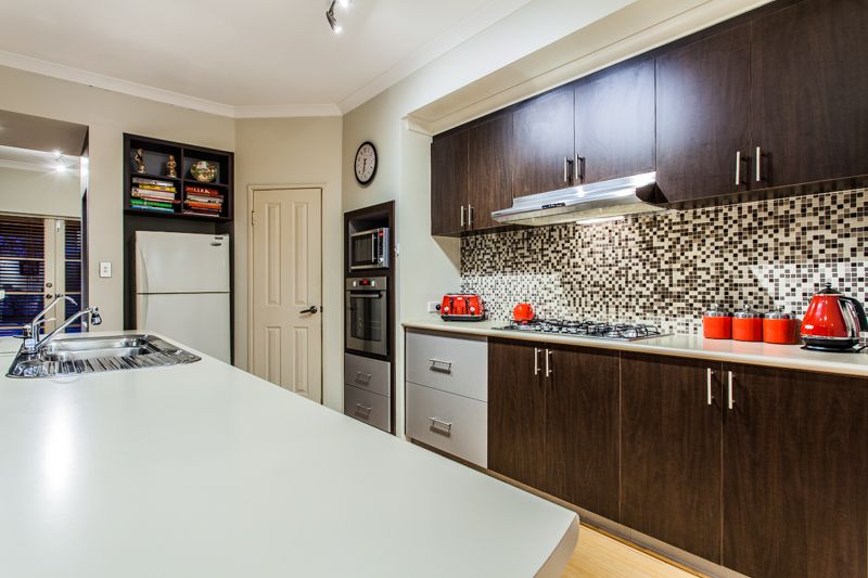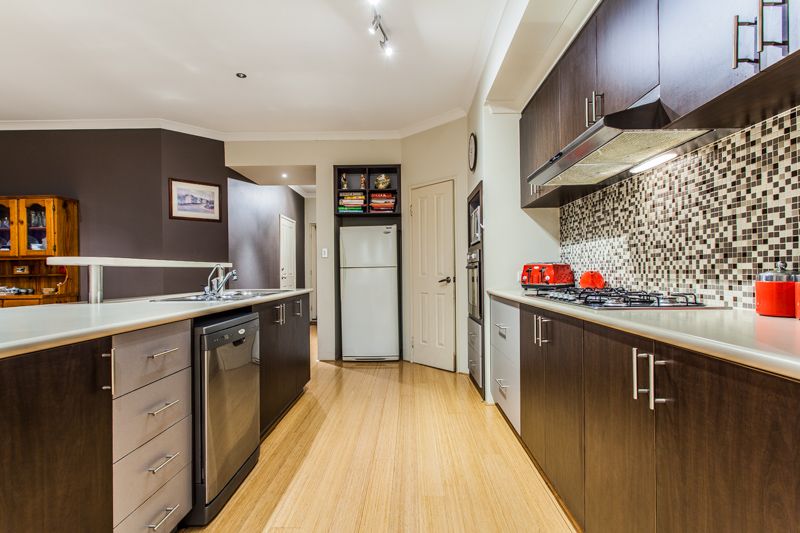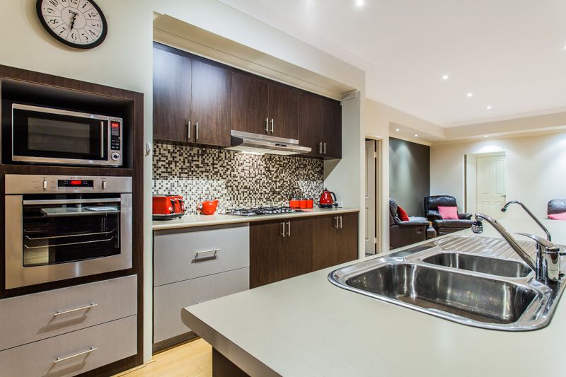 Kitchen - Island bench with breakfast bar - Stainless double bowl sink with water filter - 900mm wide gas cooktop with matching extractor and feature tile splash back - Near new stainless finish wall oven - Corner pantry - Ample cupboards including overhead and pot drawers