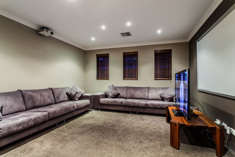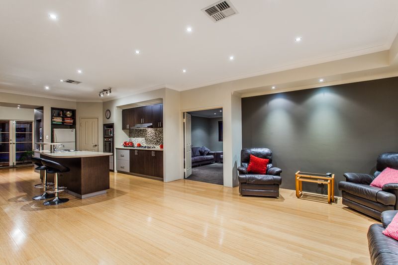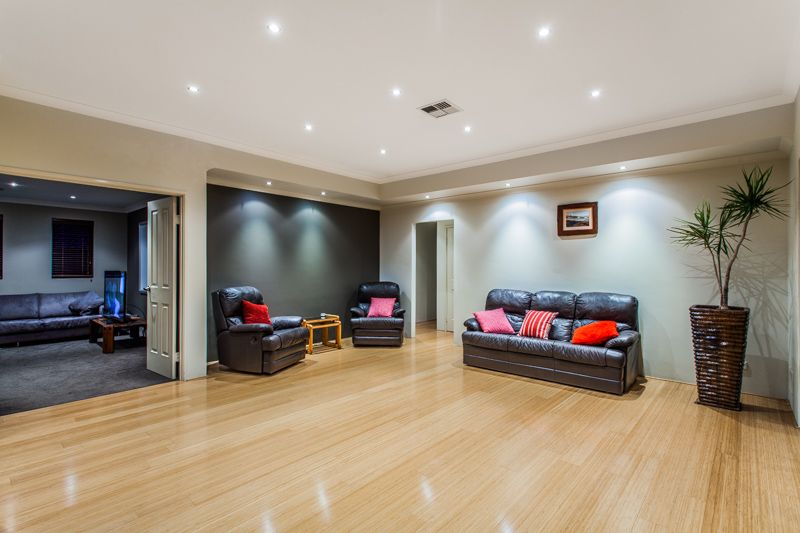 - Master suite with parents retreat, walk in robe and private ensuite - Resort style ensuite with dual basins, spa & separate toilet - 3 double size bedrooms all with built in robes - Stylish family bathroom - Solid bamboo flooring - Timber decking and feature timber inlay to the ceiling of the front Portico - Double feature front doors & double stainless steel security doors - Dedicated home theatre room with feature double doors - Ducted reverse cycle air conditioning (zoned for economy and comfort) - Open plan living and dining area with high ceilings and floor to ceiling wrap around windows and doors