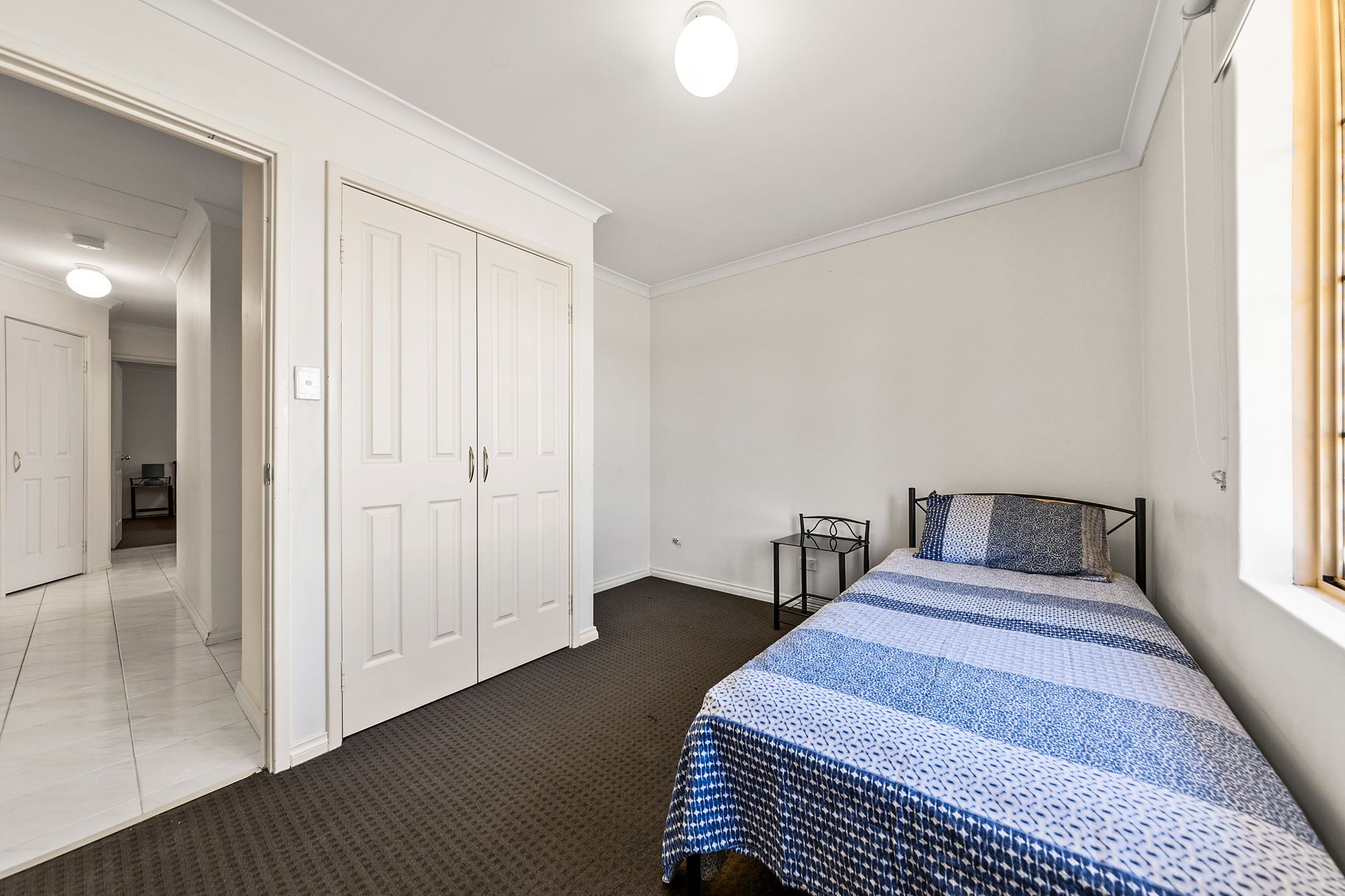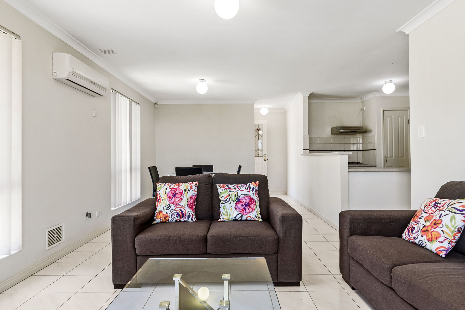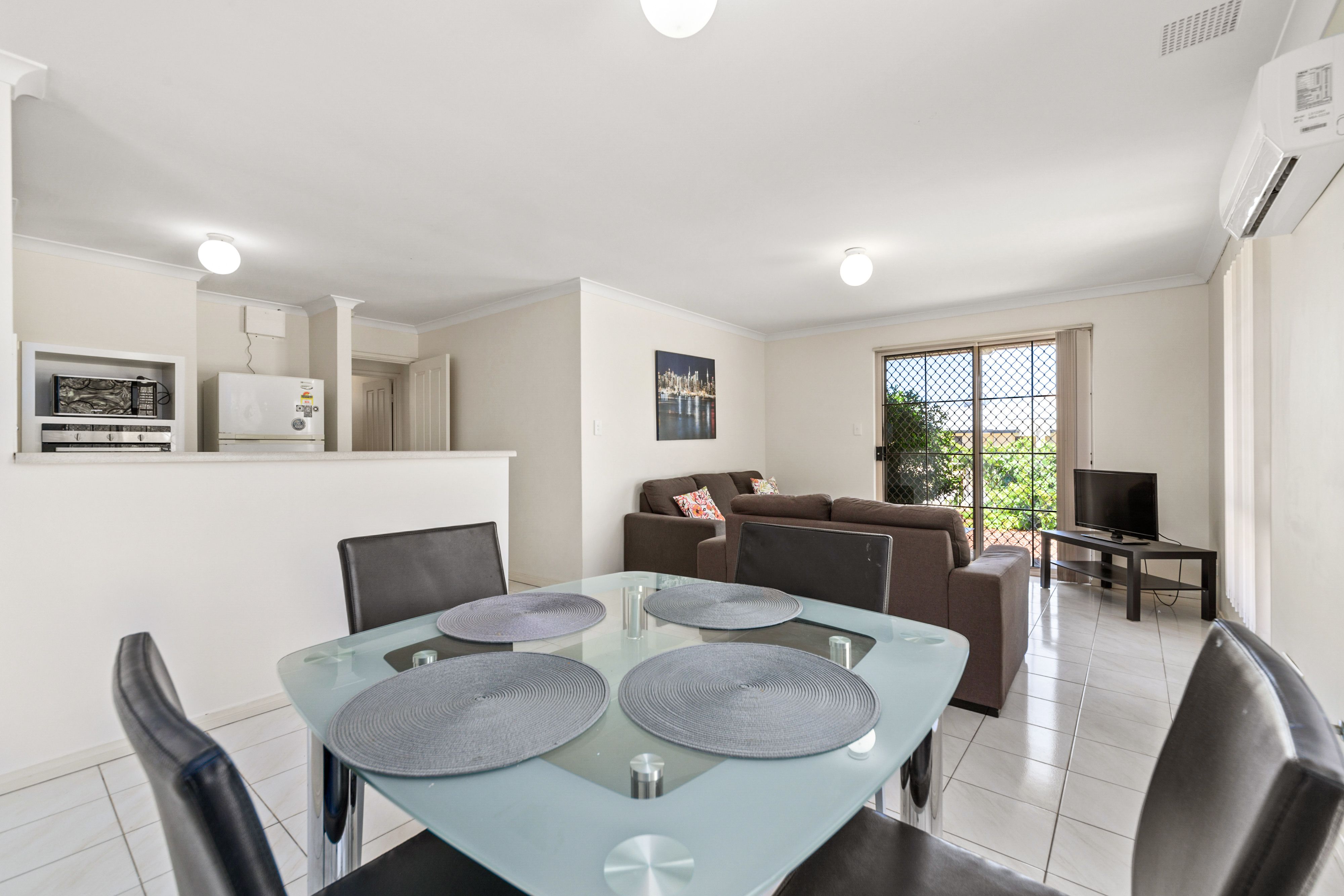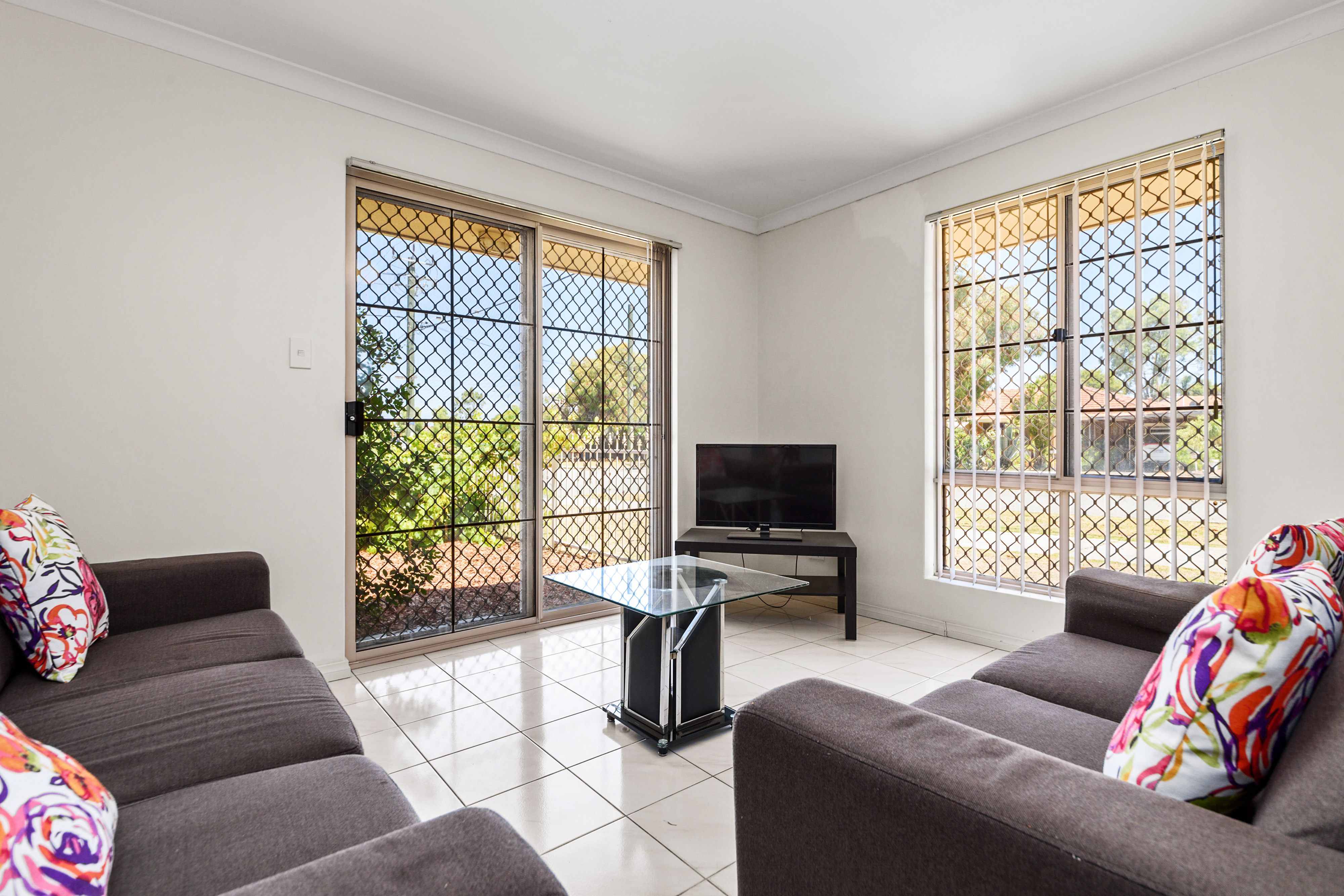 -Four good sized Bedrooms; all equipped with a desk, chair, bedside lamp, single bed in 3 rooms and a double bed in Master room -Open plan kitchen/dining and lounge area with split system air conditioning -New dining table and chairs in dining area -Lounge consists of 2 couches, a coffee table, TV and TV cabinet. -Two separate bathrooms, no en suite so is perfect for shared accommodation -Situated on a corner block with it's own fenced yard. -Planted shrubs and trees throughout the complex. -Single undercover carport room for 2 cars tandem, with Lockable Storage room and extra street parking available.