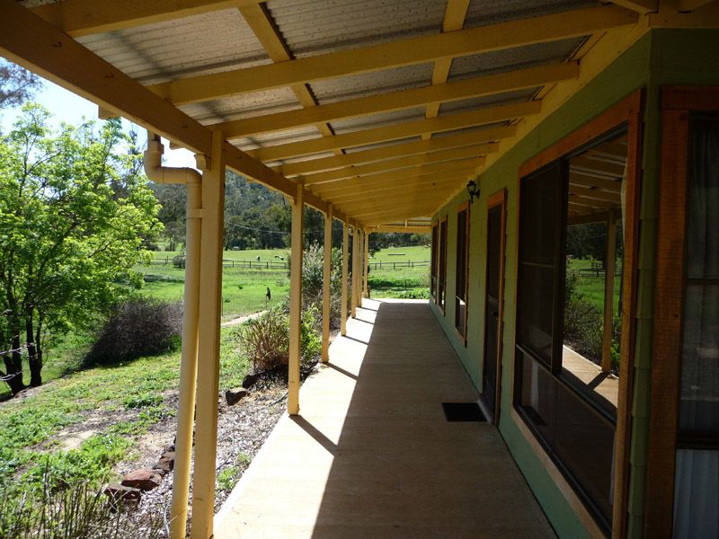 Stepping outside you have wide verandahs all around the house, a very handy 9mx6m powered workshop and 2 concrete rainwater tanks. The property is a mixture of flat and elevated areas and has excellent soil and pasture ideal for your animals.