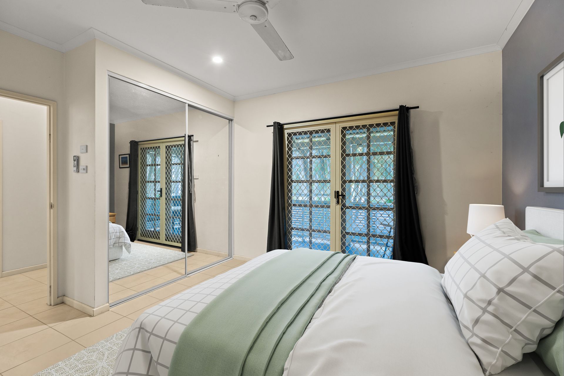 Tucked away behind a secure, electric gated entry, you're welcomed to the complex by established tropical gardens with rows of towering, mature palms. As you follow the driveway up to the home, you'll find the large, double garage with remote entry, providing secure parking for two vehicles.