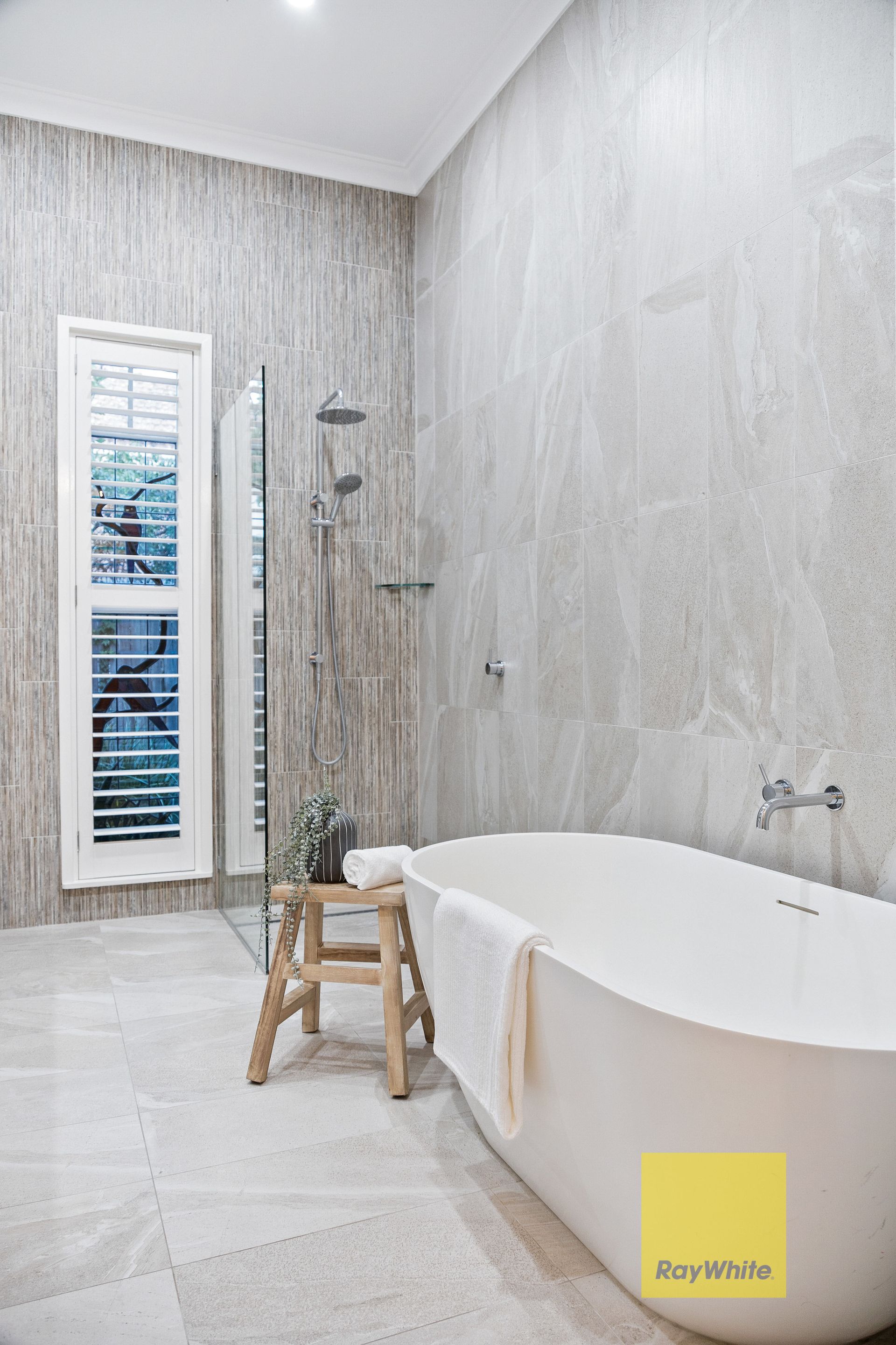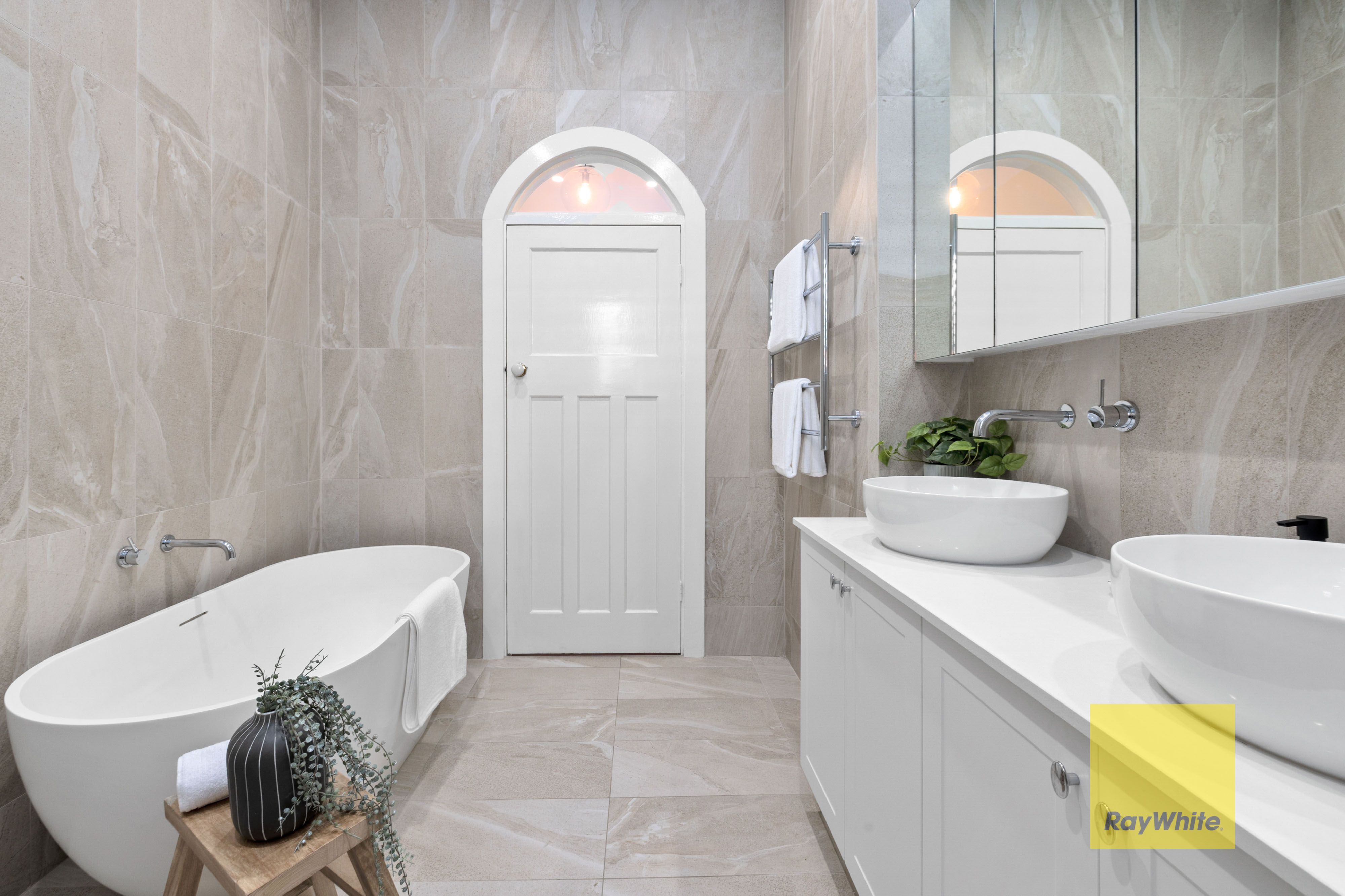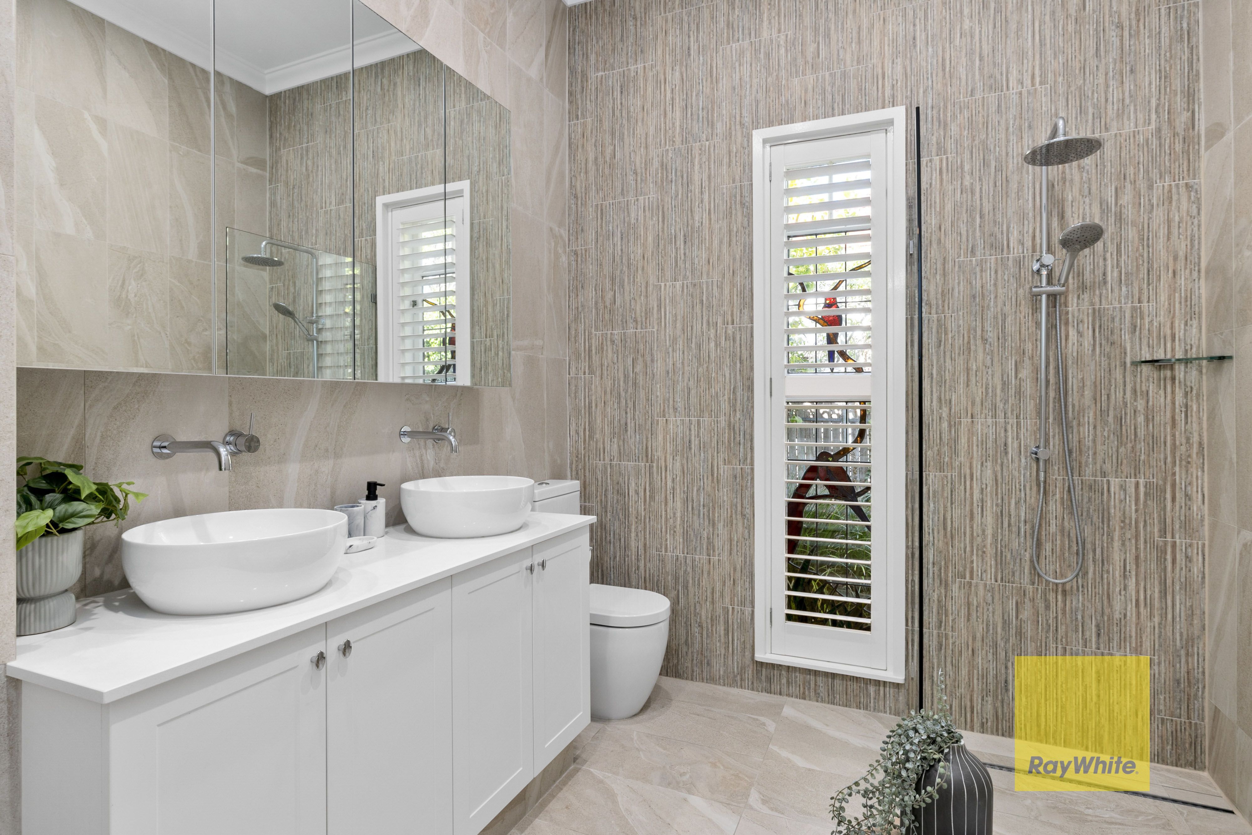 Recently renovated, the fully tiled bathrooms include CaesarStone vanities with dual basins, frameless rain showers and luxe travertine floor tiling. One bathroom also boasts a free-standing oval bathtub, the ultimate indulgence for soaking off a hectic day. Also upgraded, the spacious laundry will impress with tremendous built-in storage, including a pull-out clothes hamper, shelving for linen, and a recess for an extra fridge if desired.