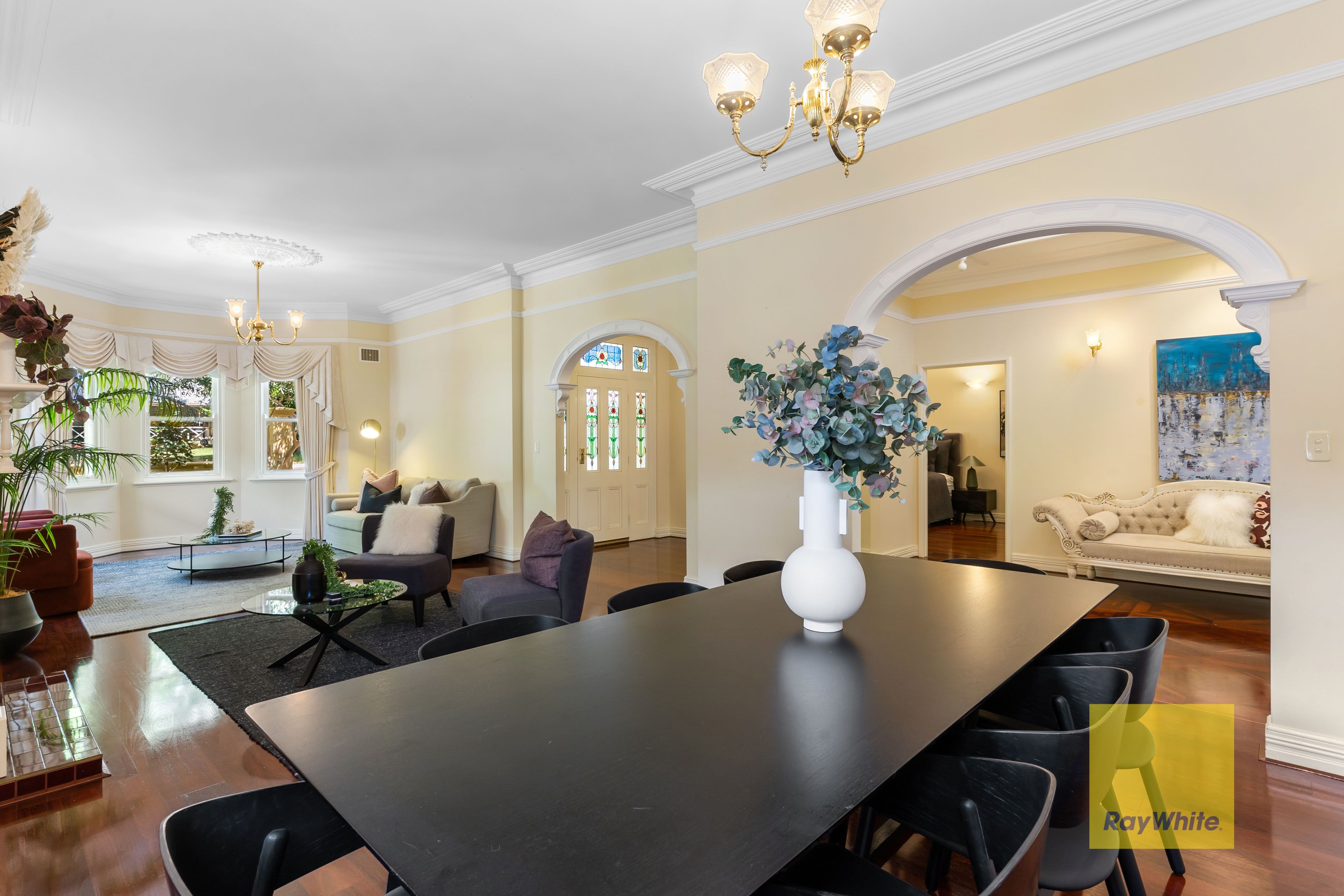 Classic period features include solid jarrah floorboards, soaring ceilings with ornate roses, decorative cornices and architraves, timber sash windows and a magnificent leadlight entrance. Tessellated tiling to the veranda, balcony and bathrooms, and reproduction tapware and bathroom fittings add further credence to the home's superb Federation appeal.