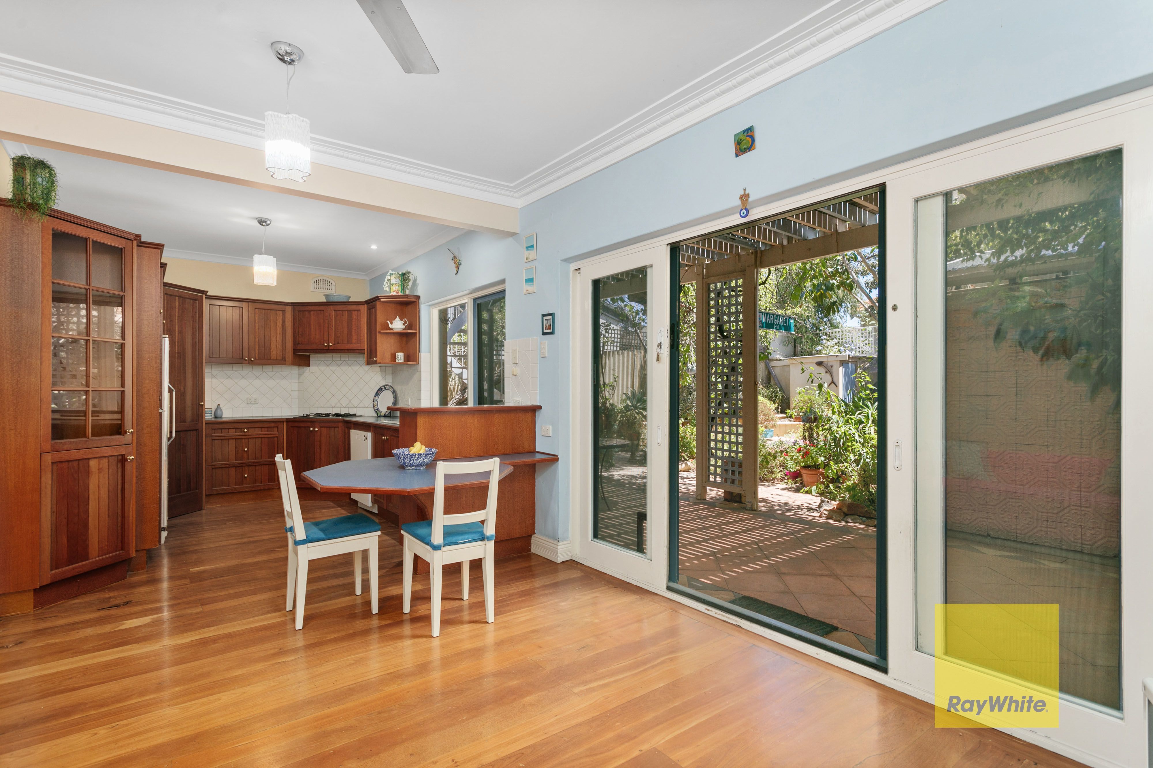 Downstairs, double doors link the front-entry porch to a splendid open-plan formal lounge and dining area with stylish light fittings, a gas-bayonet fireplace on the wall and additional built-in storage options. This space also features high ceilings and wide, bleached jarrah floorboards. The property's overwhelming charm and character flows through to a separate casual open-plan living and kitchen area, with a breakfast bar for quick meals in the middle.