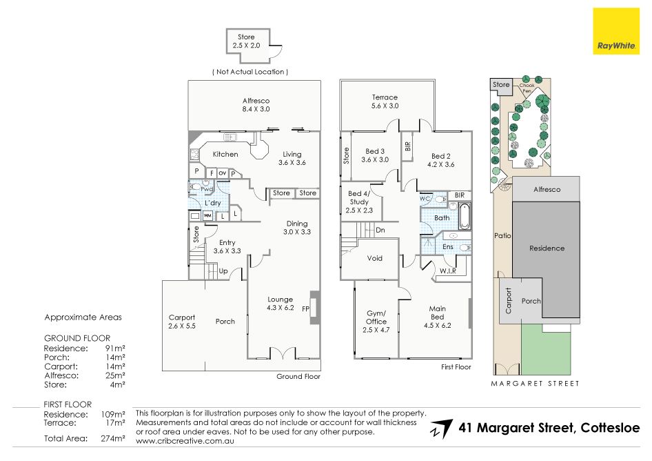 • 3 bedrooms, 1 Study and 2 bathrooms • Open-plan formal lounge and dining room, with direct access to the front verandah • Additional built-in storage to the combined living/meals/kitchen area downstairs, as well as another gas bayonet for heating and outdoor alfresco access • Upstairs terrace/balcony deck with an external staircase to the ground floor • Upstairs master suite with access to a gym/home office and ocean vistas to Rottnest Island - The perfect place to watch the annual 19.7km Rottnest Swim • 2nd upper-level bedroom with built-in robes and terrace access • 3rd upper-level bedroom with built-in storage and terrace access • Practical main upstairs bathroom with a bathtub, showerhead and vanity • Under-stair storage, off the entry • Separate 2nd toilet on the top floor • Separate laundry with a linen cupboard, a powder room and outdoor access • Single carport with tandem parking for 2 cars • Gated driveway access, also securing the front yard for kids and pets • Side patio • External storeroom • 274sqm of total approximate living area - residence, terrace, porch, carport, alfresco and storeroom included • 364sqm (approx.) block