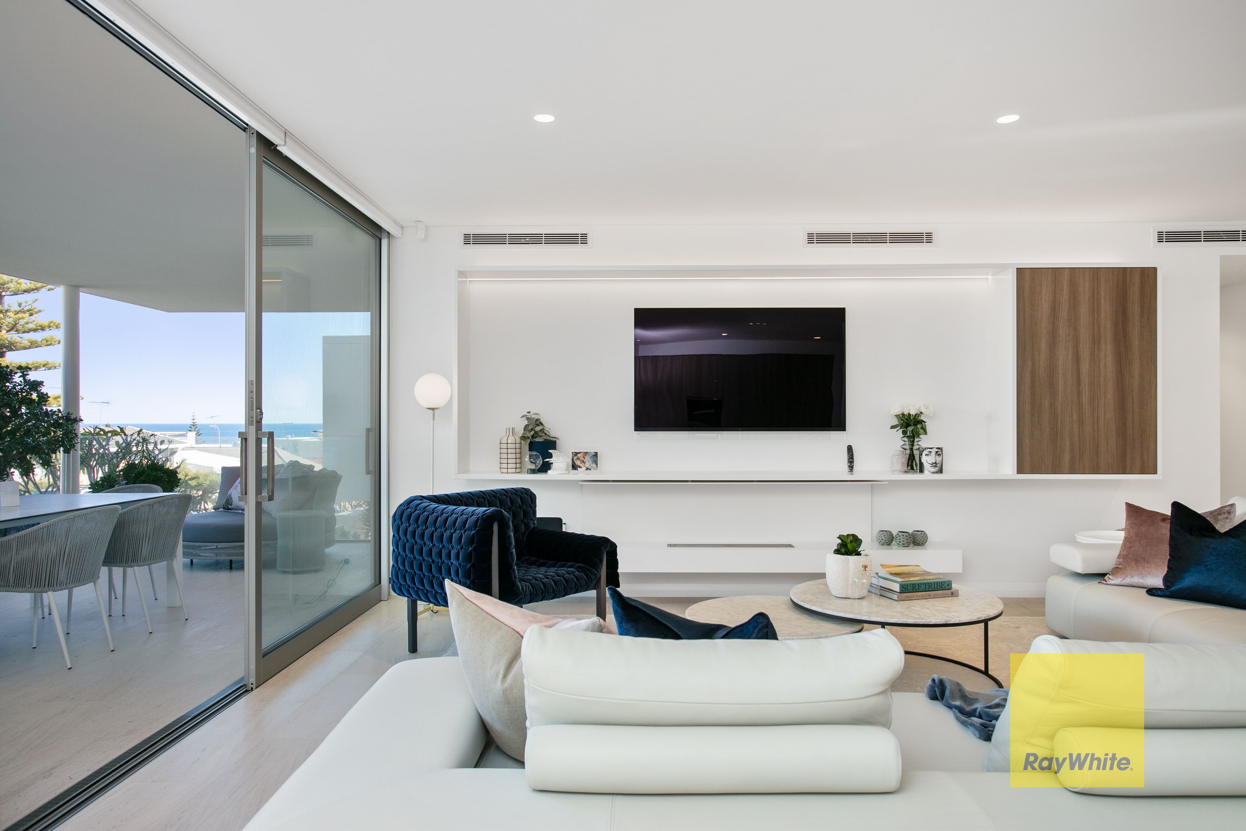 FEATURES • Keyless, secure entry • Ground floor level entry - no steps into or within the apartment • Elevator access from garage, internal, dry, and secure • Light, bright and modern, neutral pallet. • Ocean views, seamless indoor-outdoor living, and entertaining. • Entry into spacious, light-filled, open plan kitchen, dining and lounge room, polished travertine floors throughout • The kitchen has a marble island bench with an integrated breakfast bar, wine fridge, gas cooktops, Miele appliances, integrated fridge/freezer, and views to the ocean. • The lounge room is spacious, with built-in cabinetry and an automated gas fireplace. Double glass doors slide open to the balcony • Dining room with pendant lights, open via sliding double-glazed doors to portico • Outdoor patio, with built-in sink and Ilve plumbed gas BBQ. Room for outdoor dining and lounge. Stunning views of the ocean • Bedroom (1) double, carpets, built-in robe, ensuite (1) with separate powder room • Bedroom (2) double, carpet, built-in robe • Bathroom (2) separate powder room • Bedroom (3) double, carpets, ensuite (3) • All bathrooms have floor-to-ceiling tiles • Zoned reverse cycle air conditioning • Two car bays side by side • Storeroom • High ceilings with shadow line • Views and loads of light