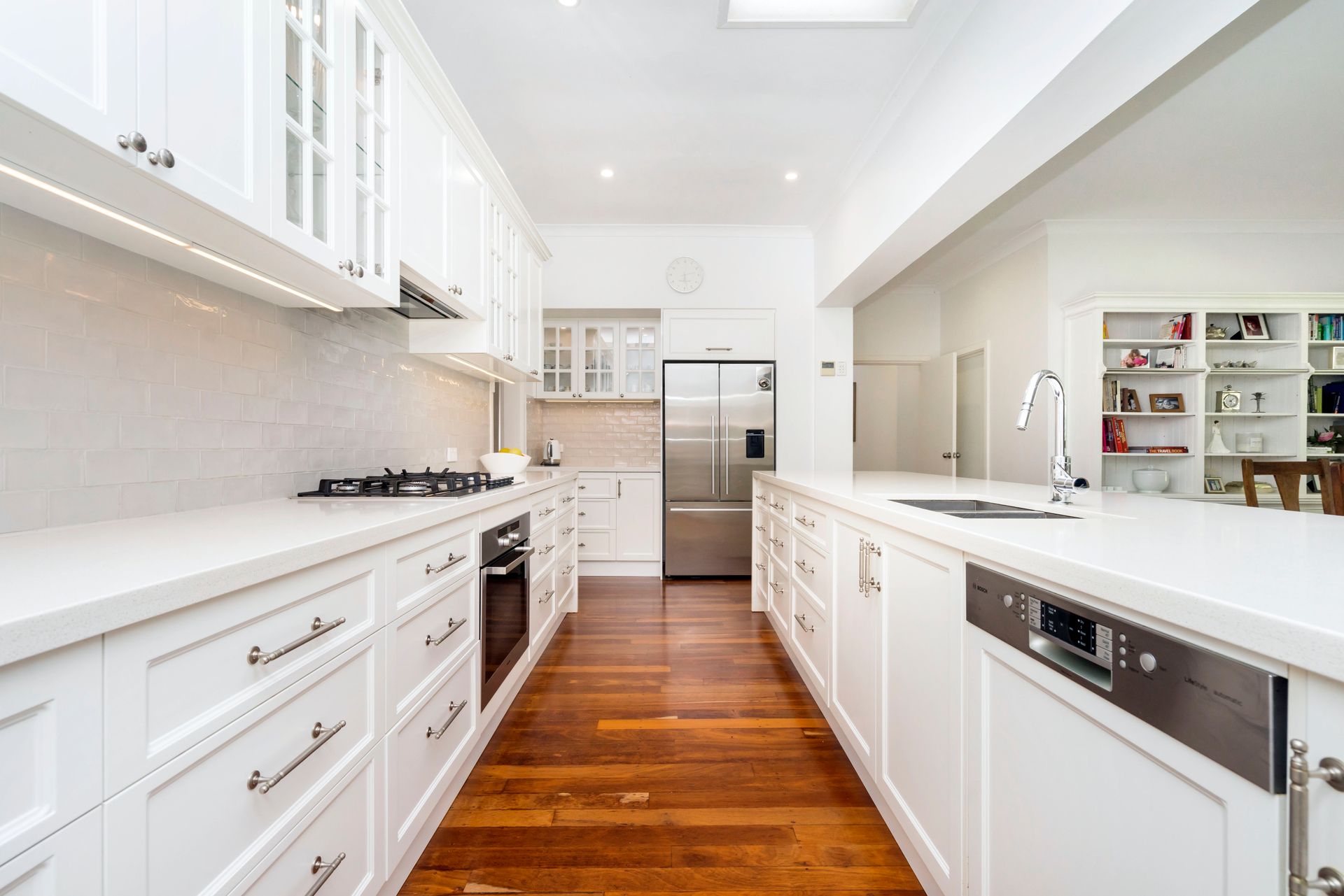 Quality fittings include polished jarrah floors, high ceilings, zoned ducted air conditioning, study nook/family organisation hub, built in Sonos speakers, gas fireplace, ROW access, garden shed, plantation shutters, original sash windows, study desks in kids' bedrooms, deep soaker bath in kids' bathroom ,skylights, stone benches, waterfall-edge stone kitchen bench, handmade Italian tiles in kitchen, walk in pantry, Miele oven, 5 burner gas cooktop, dishwasher, soft close drawers, appliance bench/drop zone, outdoor heating, reticulated gardens from bore.