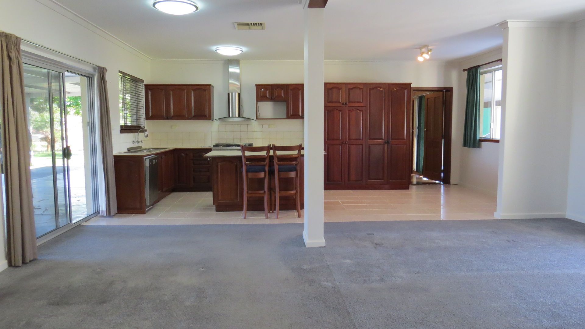 Set on a flat 6 acre property, this good sized home with 4 bedrooms and another 2 rooms that could be used as sleeping, study or activity areas. Ducted evaporative air conditioning and 2 wall air conditioners, carpet to bedrooms and lounge area. Well appointed kitchen with island bench, dishwasher, pantry, gas cooktop and fridge recess area.
