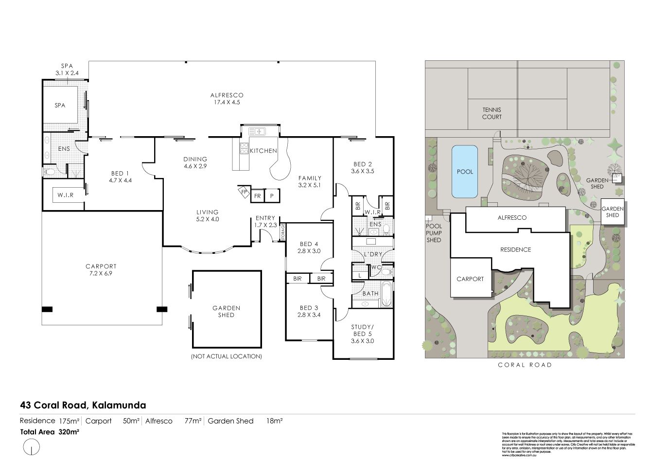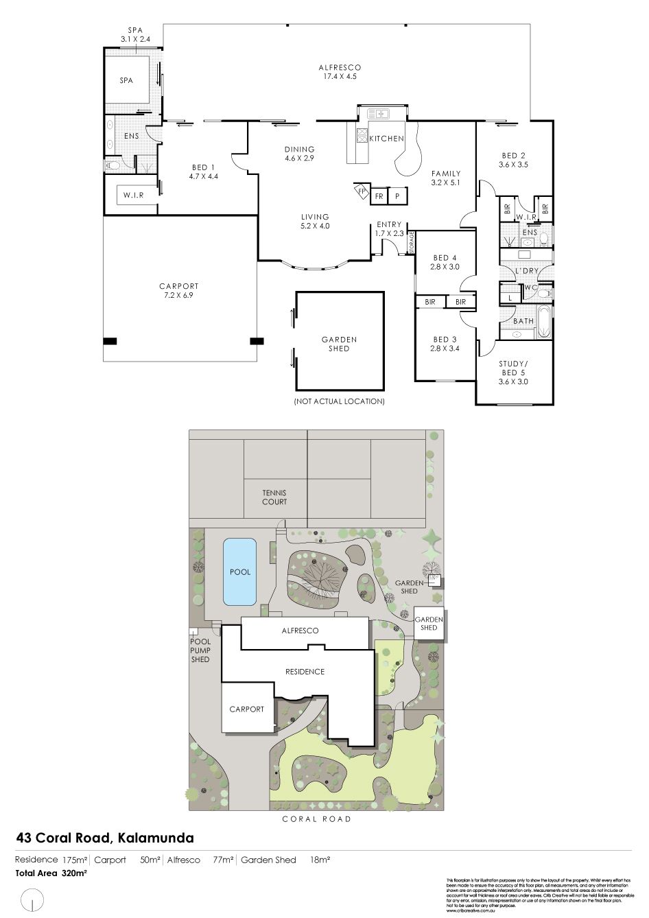 - Five bedrooms, three bathrooms - Two master bedrooms, each with ensuite - Renovated bathroom areas - Evaporative air conditioning - Bamboo flooring - Spacious formal and informal living zones - Corian kitchen benchtops + stainless steel appliances - Below-ground pool - Full-size tennis court - Four-six person spa with poolside access - Huge vaulted outdoor entertaining area - Double carport + abundant parking - 6kw Solar Panels - Fully fenced with attractive period-style brick and iron fencing - Reticulated gardens - Quiet cul-de-sac location close to Kalamunda town centre... Plus so much more!