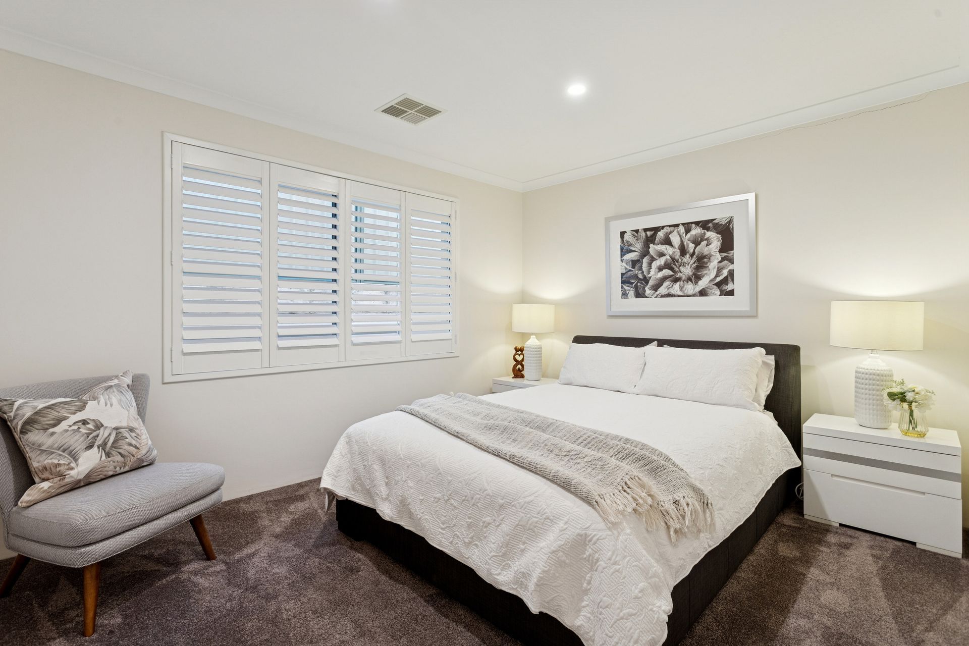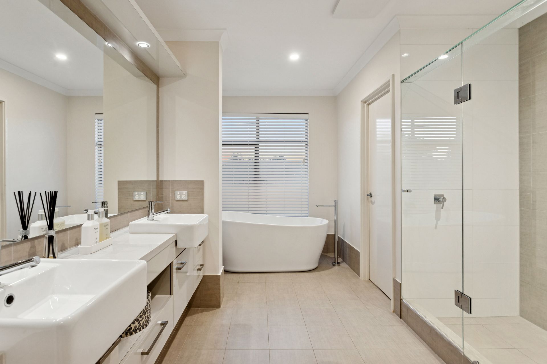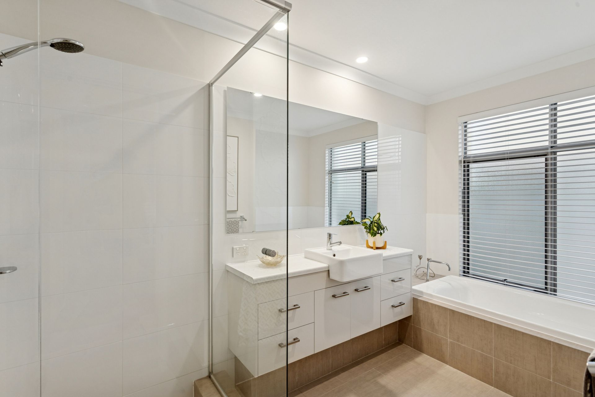 From the moment you step inside, the tone is set. High ceilings, refined finishes and a sense of calm sophistication create an atmosphere that feels both luxurious and welcoming. The master suite is nothing short of indulgent, generous in scale and beautifully detailed, complete with custom built-in furniture, elegant coving, an enormous walk-through fitted robe and a resort-style ensuite featuring dual vanities, a full-sized bath, oversized shower and full-height tiling.