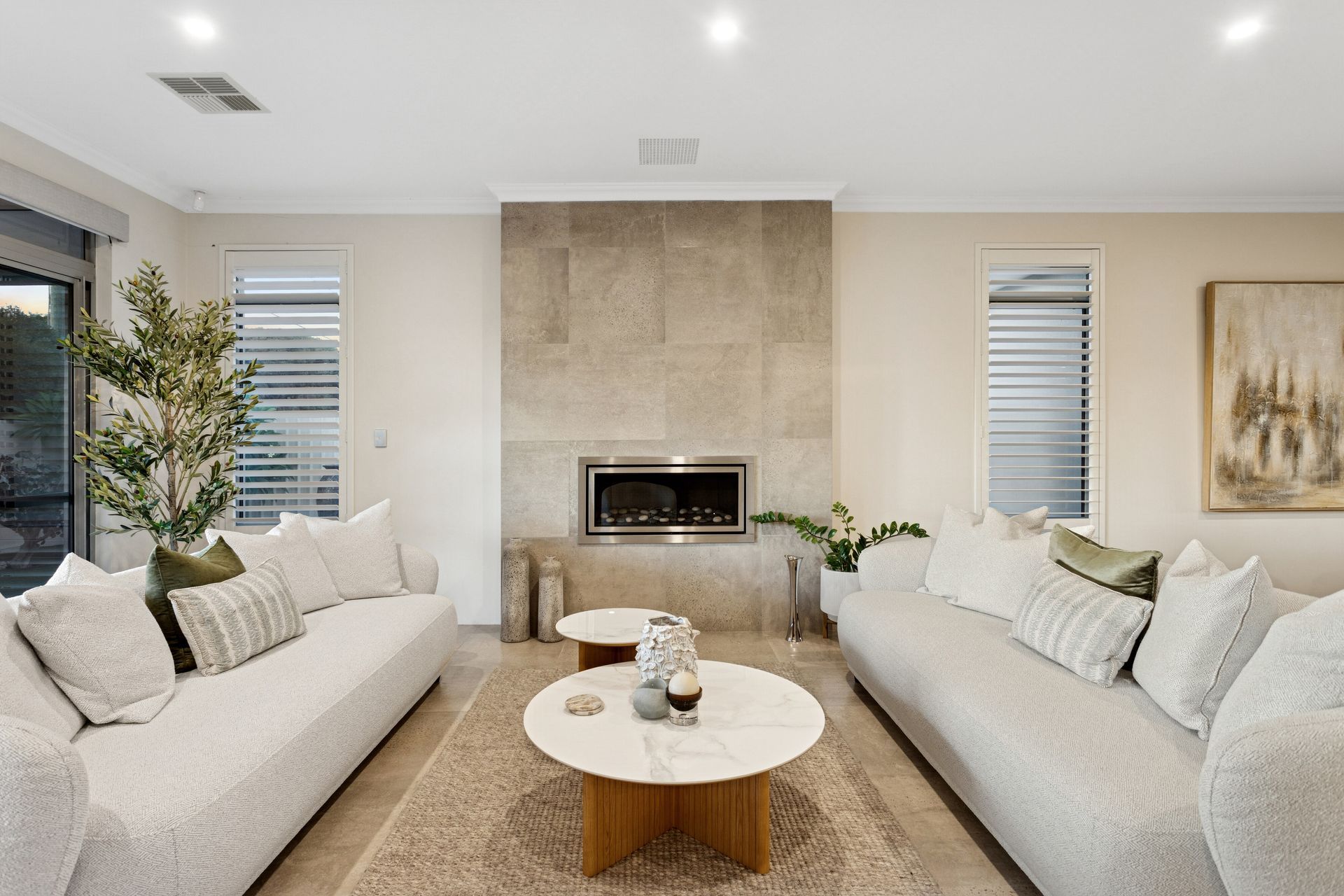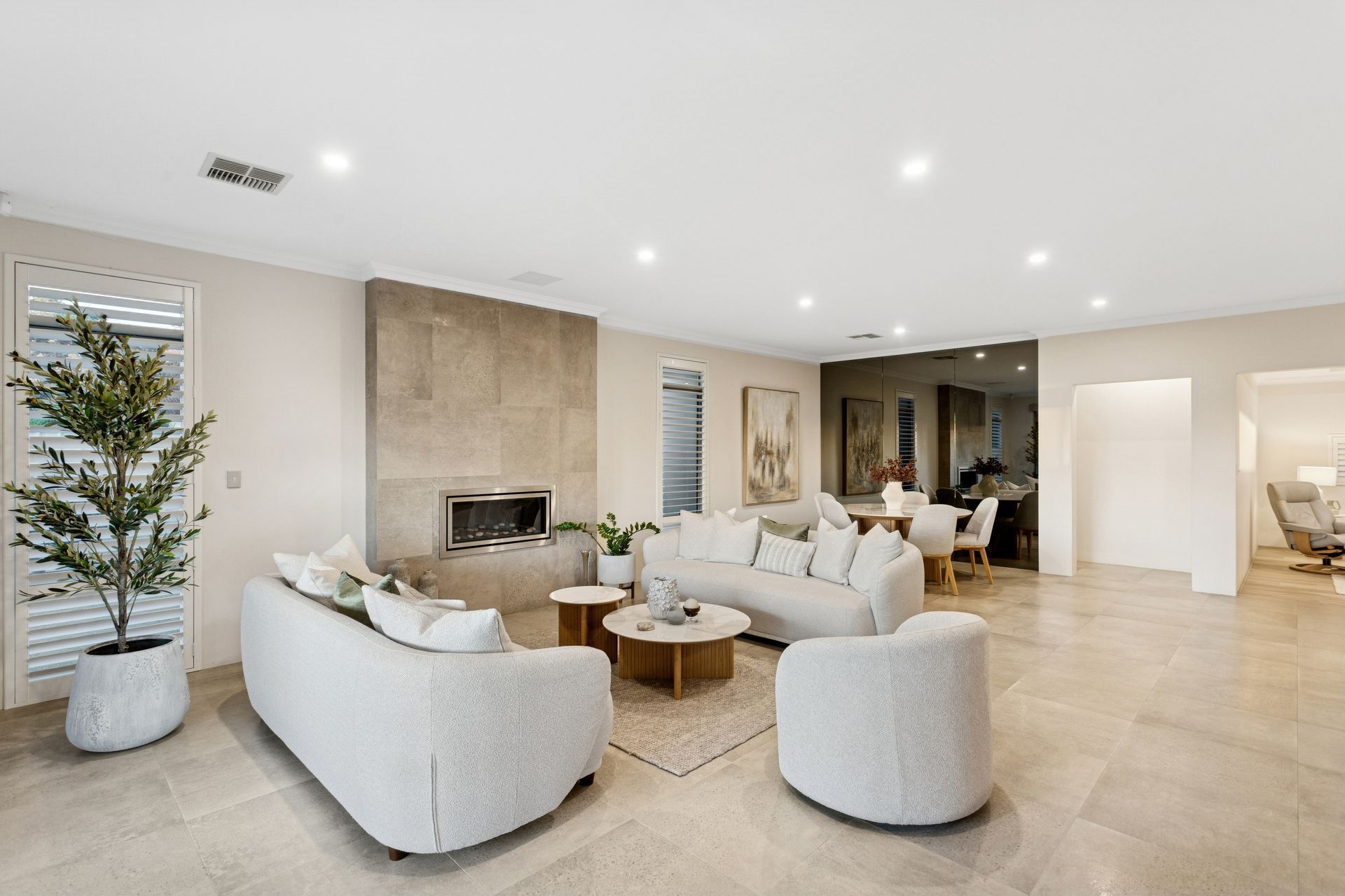 A private study near the entry provides the perfect work from home solution, while the heart of the home unfolds into an expansive open-plan living zone designed for connection and entertaining. Caesarstone benchtops, quality appliances, a large walk-in pantry and seamless shopper's entry from the double garage ensure practicality is never sacrificed for style. A striking gas stone fireplace anchors the space, while sliding doors opens to a cedar lined alfresco with ceiling fans outlooking a private courtyard style retreat that enhances both ambience and year-round usability.