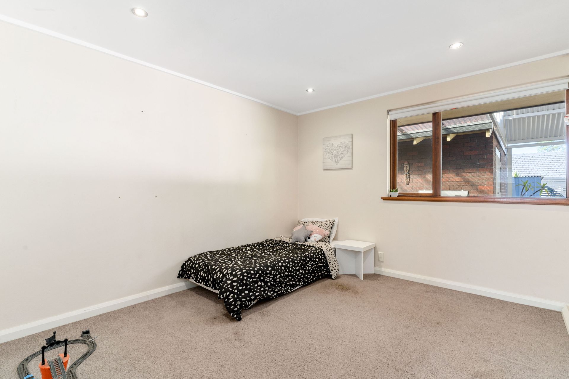 The master bedroom features a built-in robe and split system air conditioning. The other two bedrooms are a generous size utilising the practical bathroom and a separate toilet.