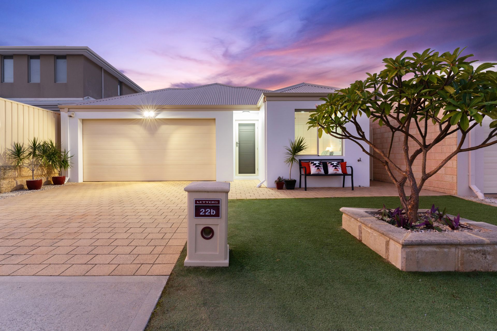 • Remote lock up double garage with shopper's entrance plus store at the rear • Recently installed Daikin reverse cycle split system air con for all year-round comfort • Open plan kitchen, dining and living area with a plenty of natural light • The Contemporary kitchen boasts plenty of storage and preparation space with 40mm thick reconstituted stone benchtops, stainless steel appliances, dishwasher with additional overhead storage and breakfast bar • Spacious Master suite with walk in robe and well-appointed ensuite • A large family bathroom featuring a WC, shower and a separate bath is positioned between bedrooms 2 & 3 • Both secondary bedrooms are complete with built-in double door robes • Functional Laundry with dual sliding door linen/storage • Additional linen cupboard/storage in the hallway • Tiled and timber look laminate floors throughout • Easy to maintain front yard complete with artificial turf & feature limestone planter • A super low maintenance and private entertaining courtyard with shade sail cover provides the perfect setting to relax and entertain family and friends • Security alarm system