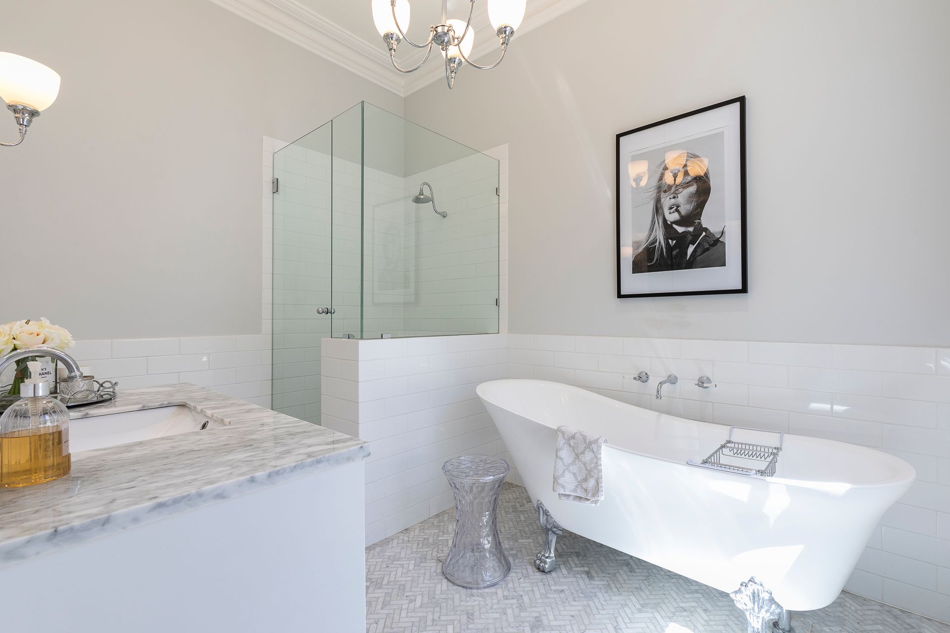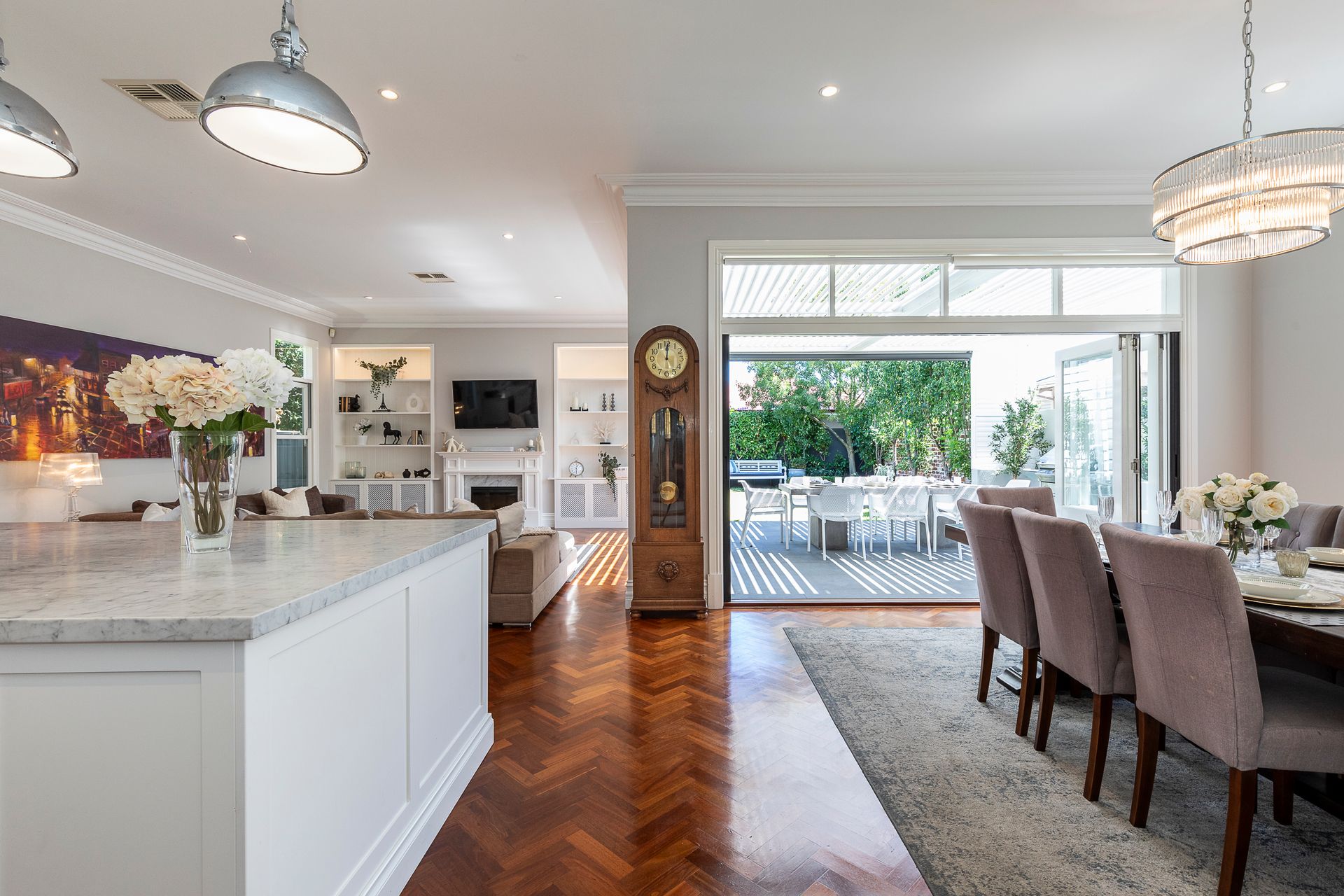 Renovated and extended from its original 1925 build, this character-filled home features a thoughtfully designed layout that includes 4 generous sized bedrooms including a spacious master suite with BIR's and a luxurious ensuite, and a study. A stylishly appointed kitchen, dining, and living area adorned with custom cabinetry and stunning jarrah parquetry floors. The double bifold doors effortlessly connect the indoor and outdoor spaces, creating an inviting atmosphere for both intimate gatherings and larger celebrations.