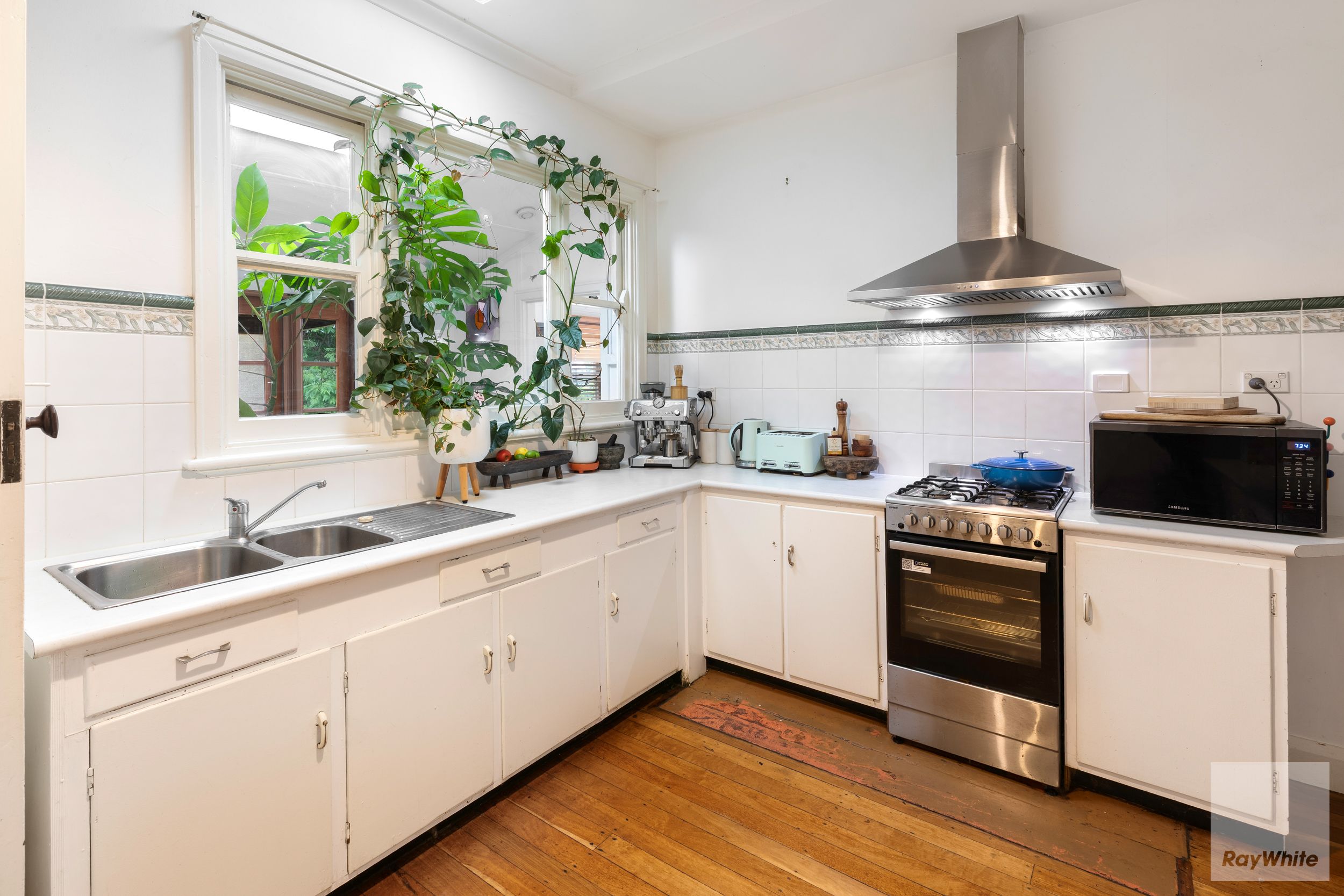 The kitchen features a large pantry and original cabinetry. It is a roomy and functional space which is centrally located. There are 2 good-sized bedrooms at the front of the home, along with a room that could be either a study or dining room, or even 4th bedroom. The choice is yours. Bedroom 3 is a sleep-out created in the enclosed rear living area. Beyond this is a lovely patio with wide french doors, where you can sit out with a cuppa or wine and enjoy the outlook.