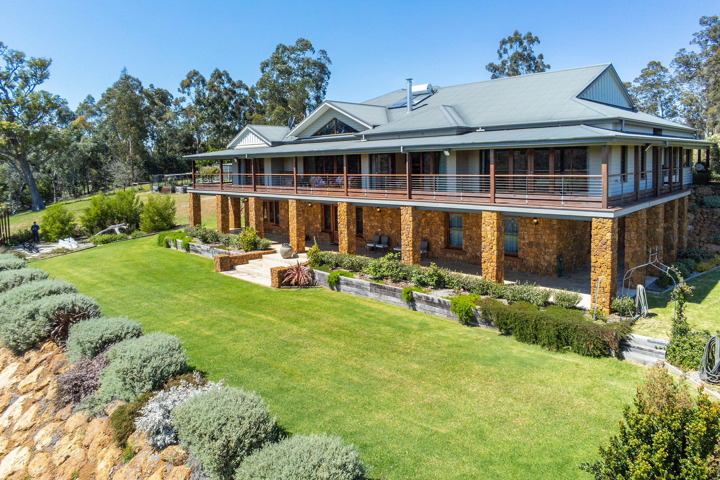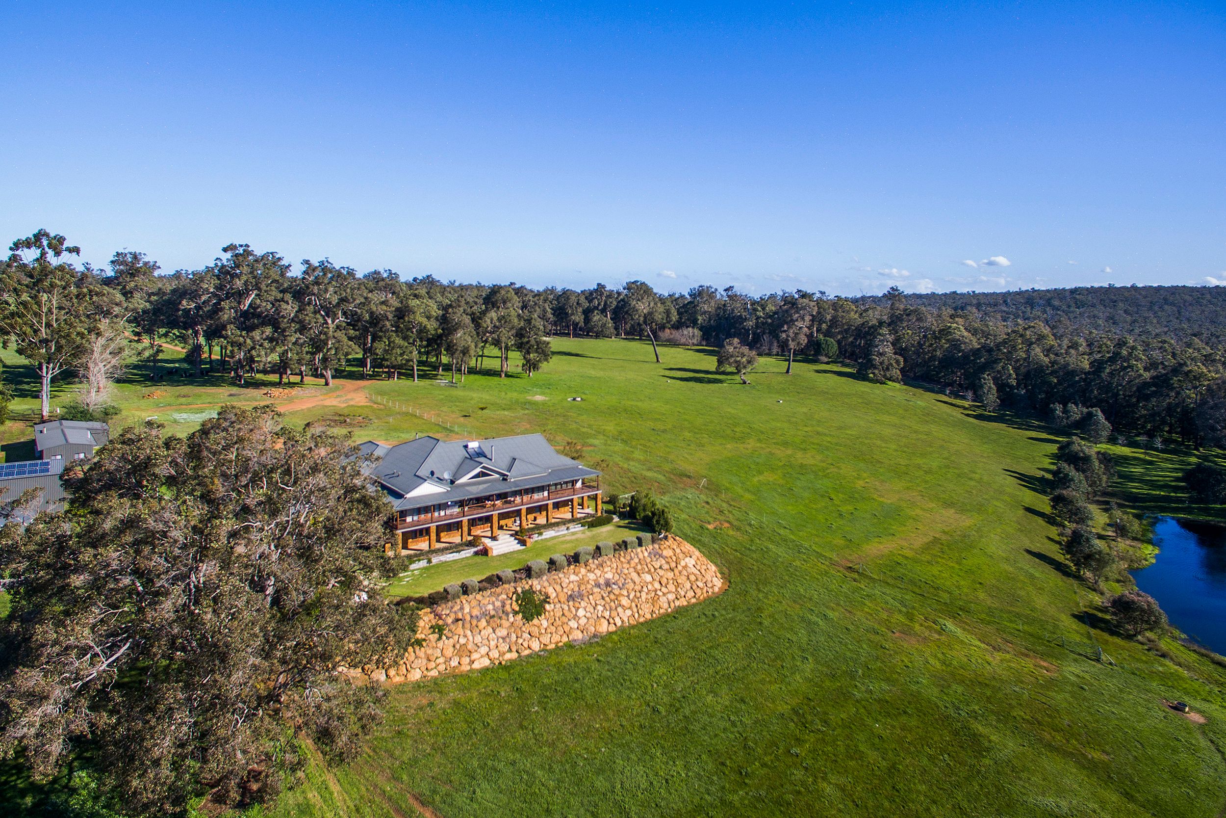A bespoke two-story designer home is a one of a kind masterpiece, through dedication to absolute attention to detail resulting in this magnificent home. Perched atop a beautiful rise, epitomising all that constitutes country elegance. Set on 101 acres of rolling pasture that is bordered by State Forest and by the Blackwood River, delivering absolute privacy in the perfect location in the South West.