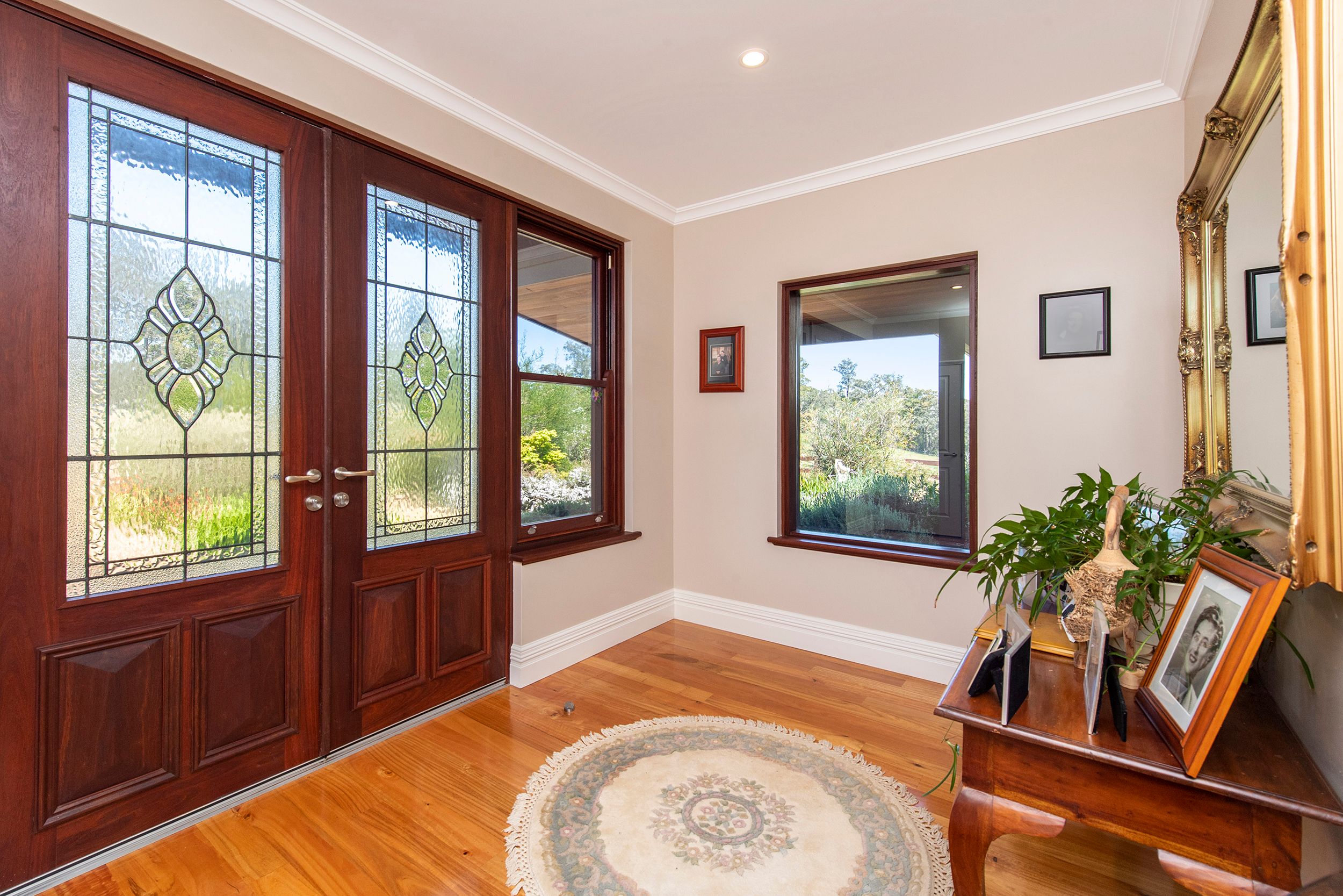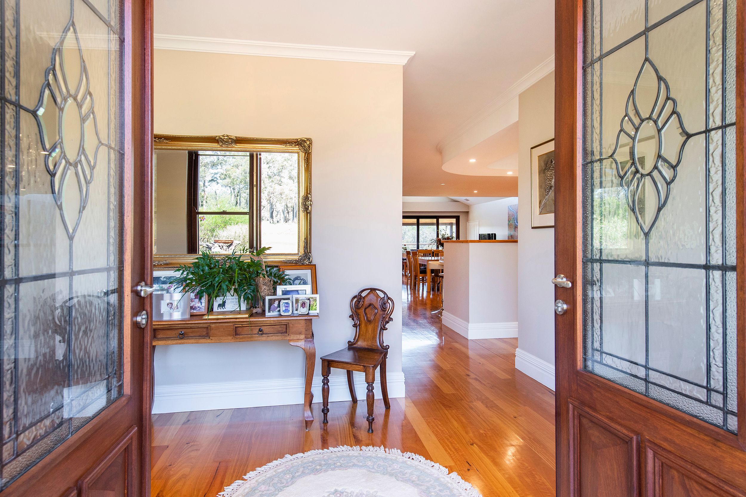 Entry to the property via a quiet country lane with electric security gates. Natural bush and pastured paddocks guide you down the driveway through a sculptured parkland that leads you up to the magnificent grand residence.