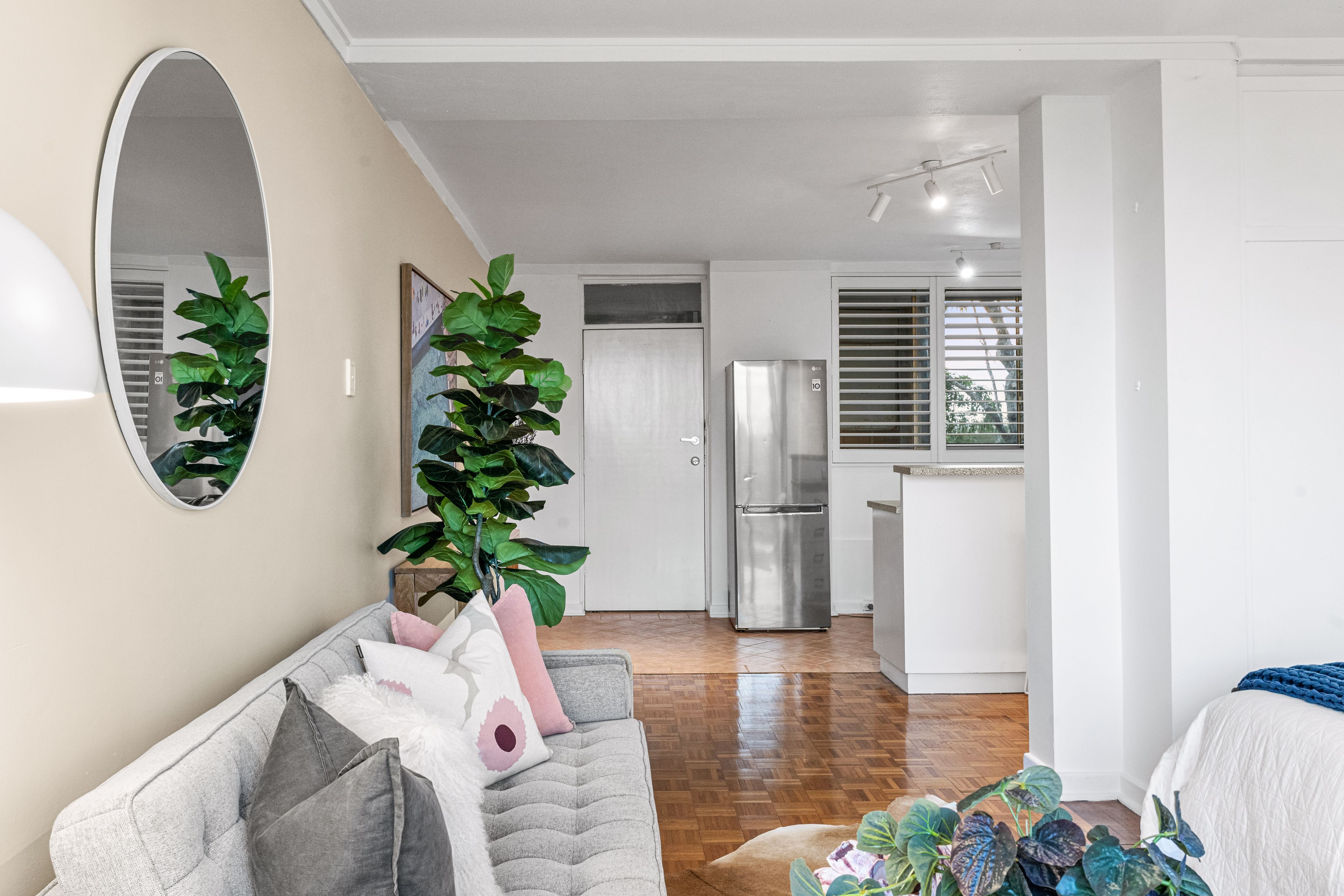 Neat, clean and tidy, this apartment is move-in ready - or gut the space to begin with a blank canvas and add your own creative touch to this great space. The open-plan living, with parquetry floors, offers plenty of light while a partial room divider offers a generous amount of robe space and storage.