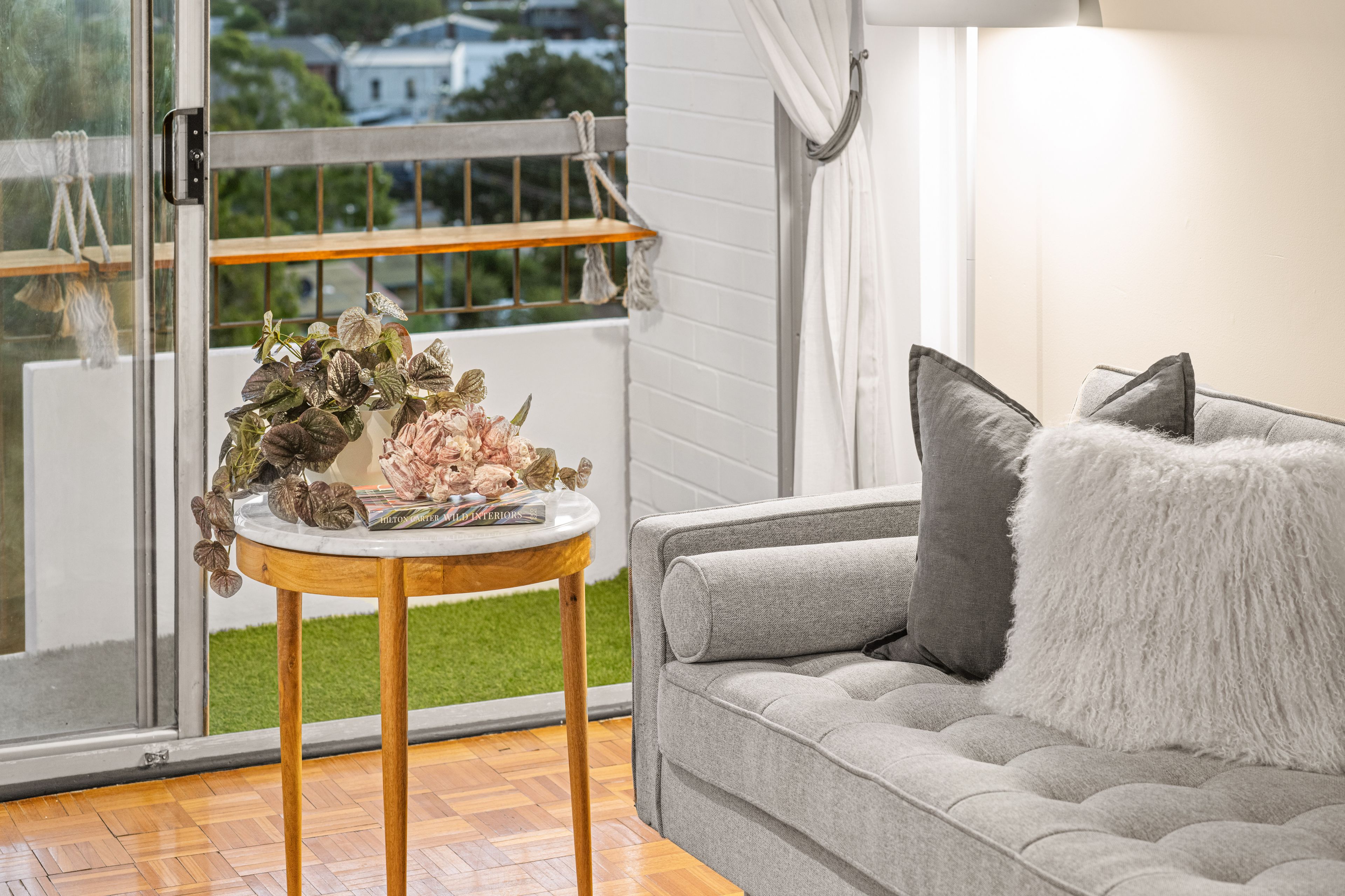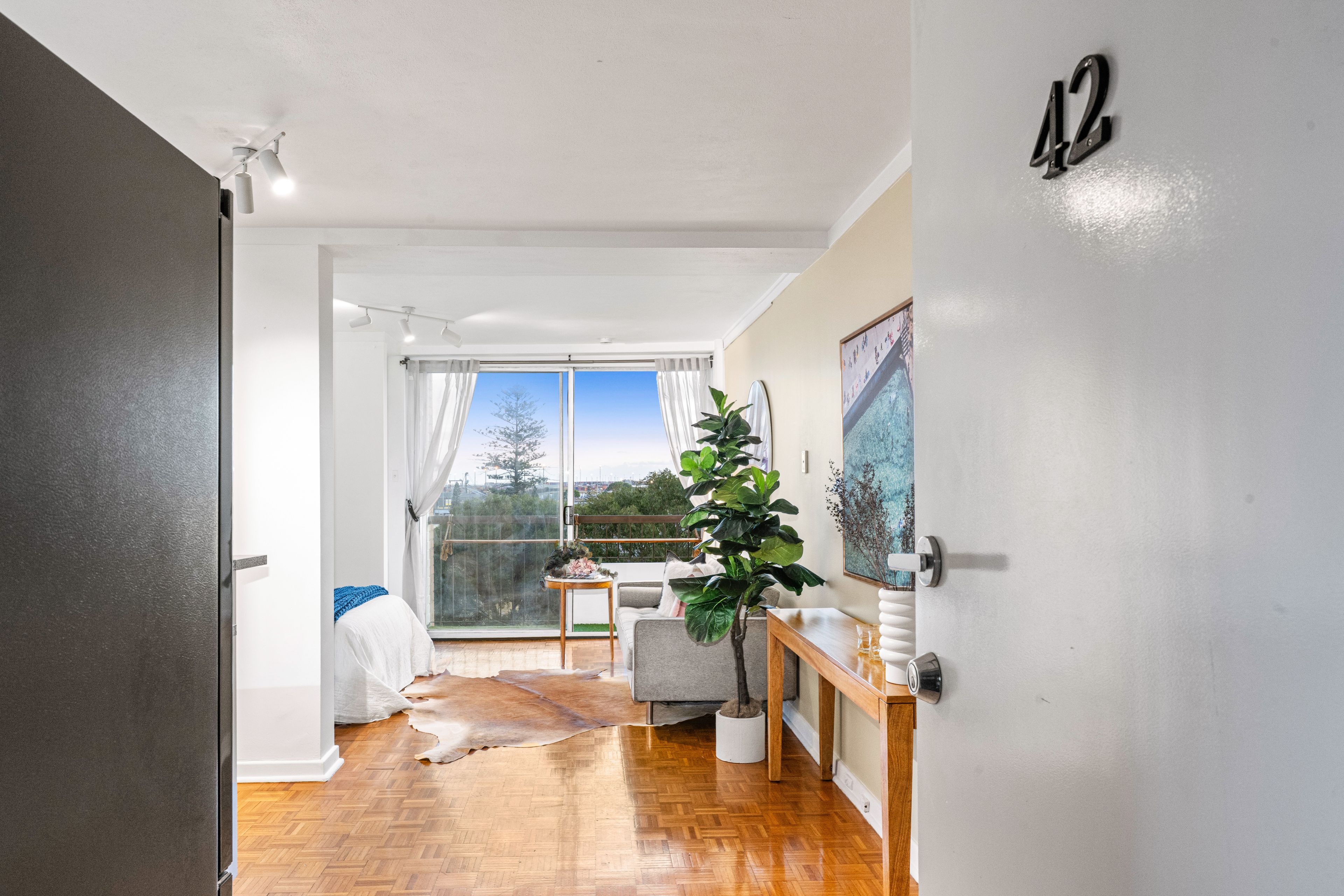 Get your steps in via the stairs or take the lift to the fourth level. The open style of the apartment walkways captures lovely treed neighbourhood and river views across North Fremantle.