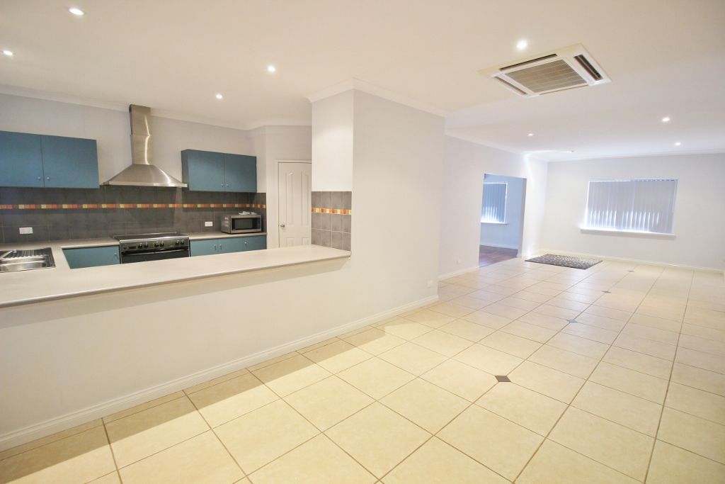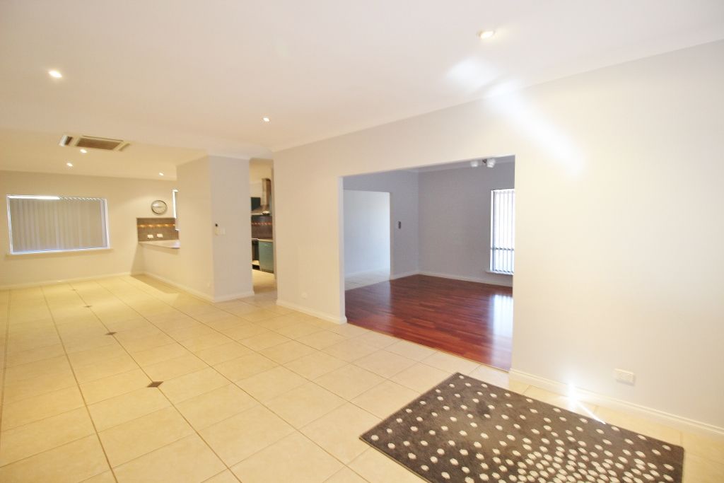 The main living area is large and features a large modern kitchen and seperated lounge / TV room with wood flooring. The rest of the house is tiled for easy maintenance.