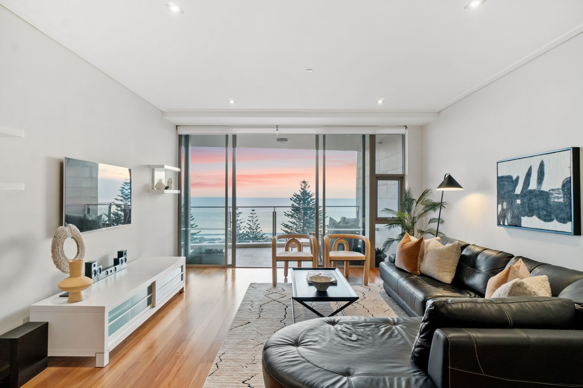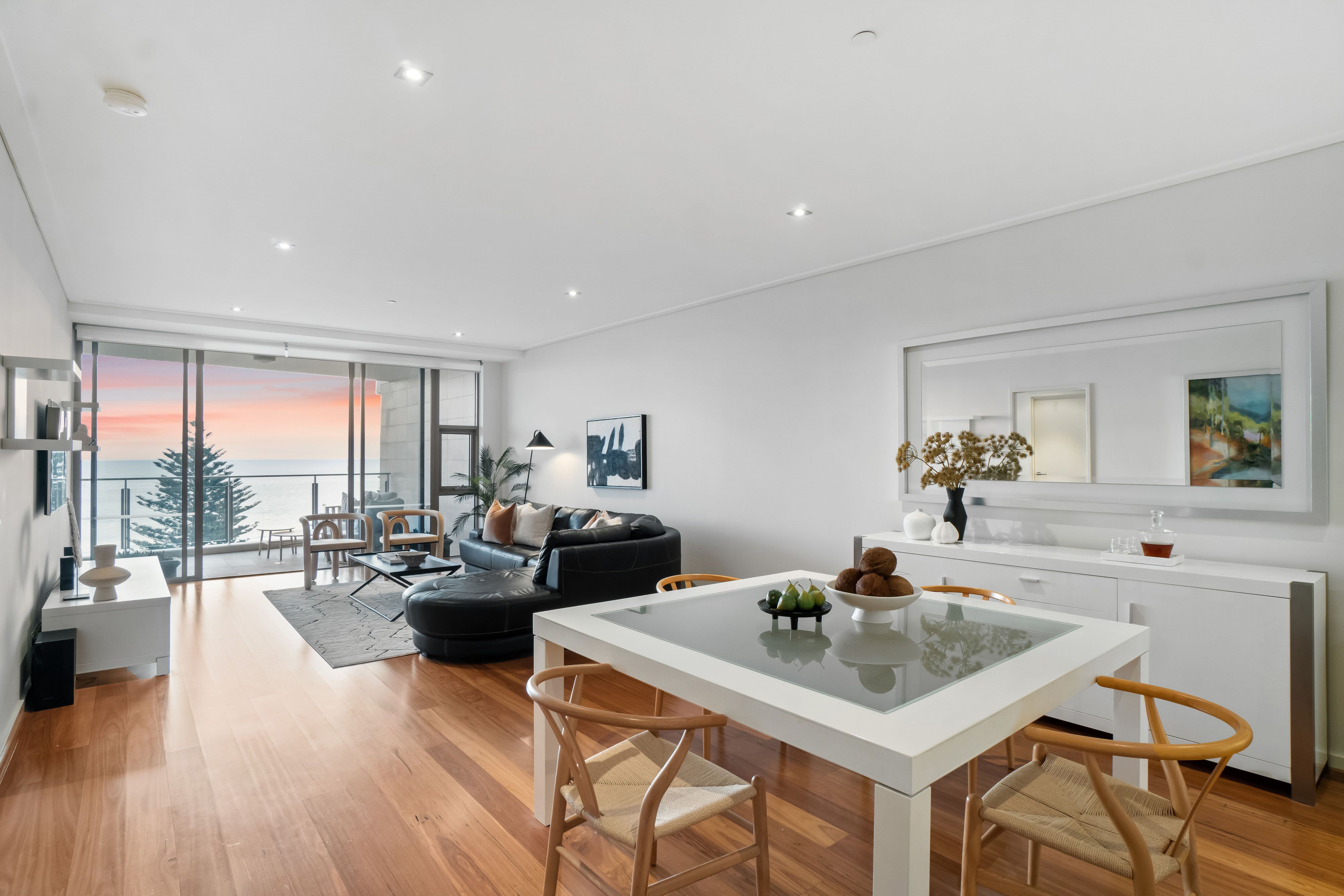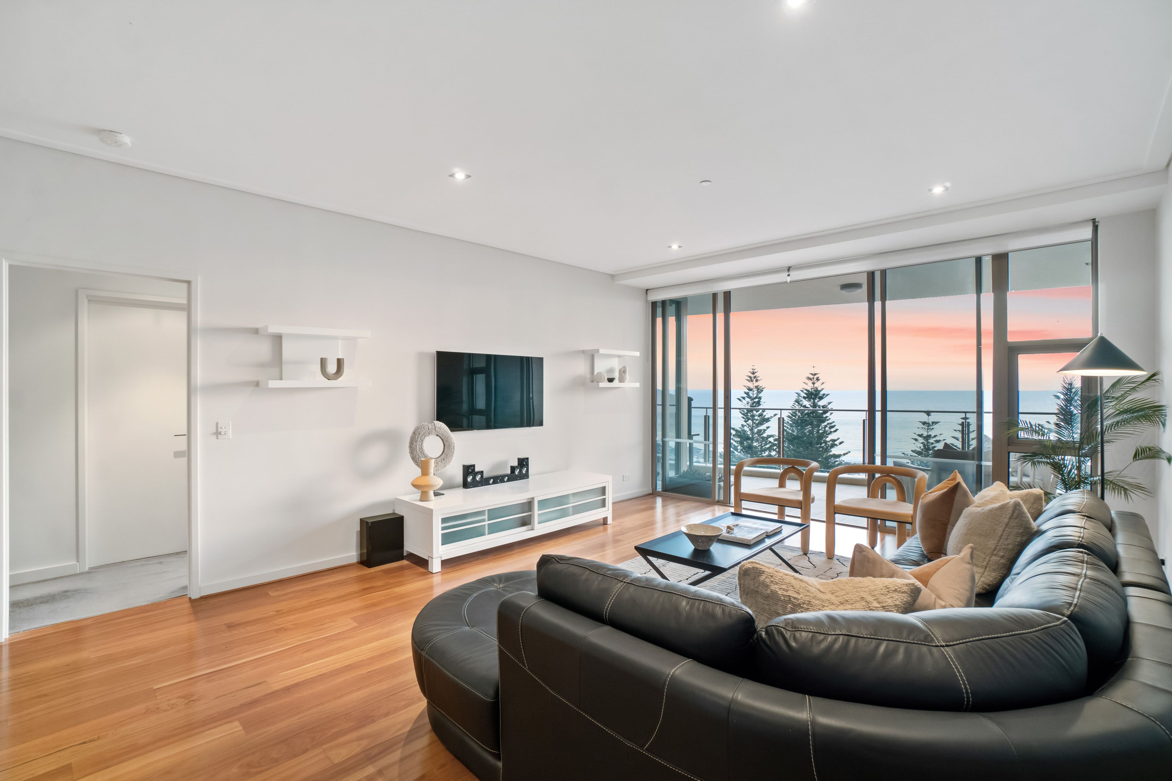 Located in Scarborough's prestigious CeVue development, this 3-bedroom, 2.5 - bathroom apartment boasts a generous 206sqm of living space, luxurious fixtures and finishes, and unforgettable West Coast sunsets. Step into this stunning fourth-floor apartment and you're immediately greeted by ocean views - which continue from almost every corner of the property. Exquisite blackbutt flooring leads you through the apartment and out on to the 20sqm balcony, with its panoramic ocean views. There can be no better place in the world to barbecue with family and friends as you take in the grand vista.