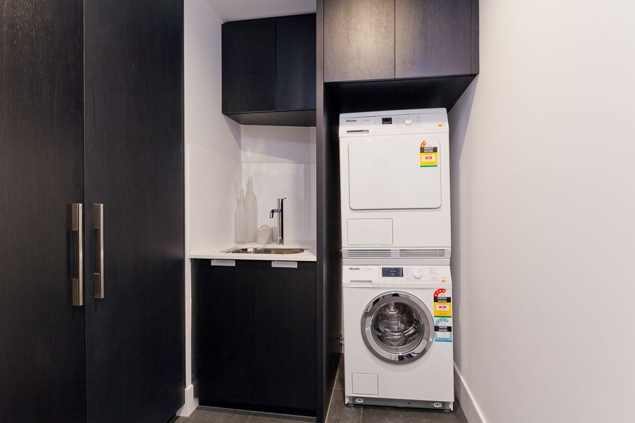 Magnificently finished with elegant contemporary style including; feature pendant light, lush carpets, full height oversize doors and windows, stone benches, quality tapware, full height tiling and floating vanities in bathrooms, a double rainhead shower and Vovo toilet system in the main ensuite, 55' HD LCD Mounted TV, chic ethanol fireplace, Miele washer and dryer in laundry, built in linen closet, secure parking in underground carpark.