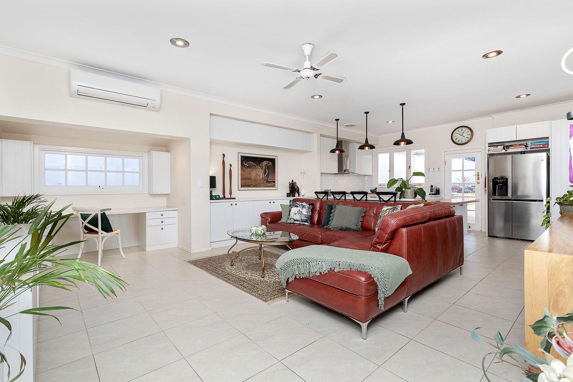 • 5 bedrooms, 5 bathrooms • Remote-controlled double driveway access gates for ample secure parking space • Double carport, with heaps of built-in storage options at the rear of the block • Cleverly-concealed European-style laundry within the main kitchen • Separate main laundry servicing the rest of the house, with ample storage • Drop-down-ladder access up to a large storage attic • High storage capacity throughout • Wooden Jarrah floorboards • Gorgeous French doors • Quartz tiles • Custom cabinetry and stone finishes throughout • Shaws Classic porcelain double sinks in the main kitchen • Various televisions and fridges included • Split-system air-conditioning throughout • Ceiling fans • Electric side awning to protect the courtyard next to the side alfresco • Feature skirting boards • In-built Venetian blinds within the glass cavity of some external doors • White plantation shutters • Private hot and cold water outdoor shower • Two gas hot-water systems • Reticulated gardens • Separate boat-parking bay off the street frontage • Double side-access gates • Large 832sqm block