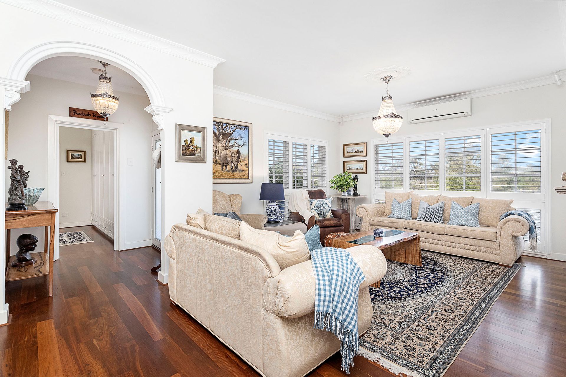A gas log fireplace warms a welcoming formal lounge room that merely sets the scene for the excellence lying within and enjoys a sprawling green aspect from its windows, just like most other rooms.