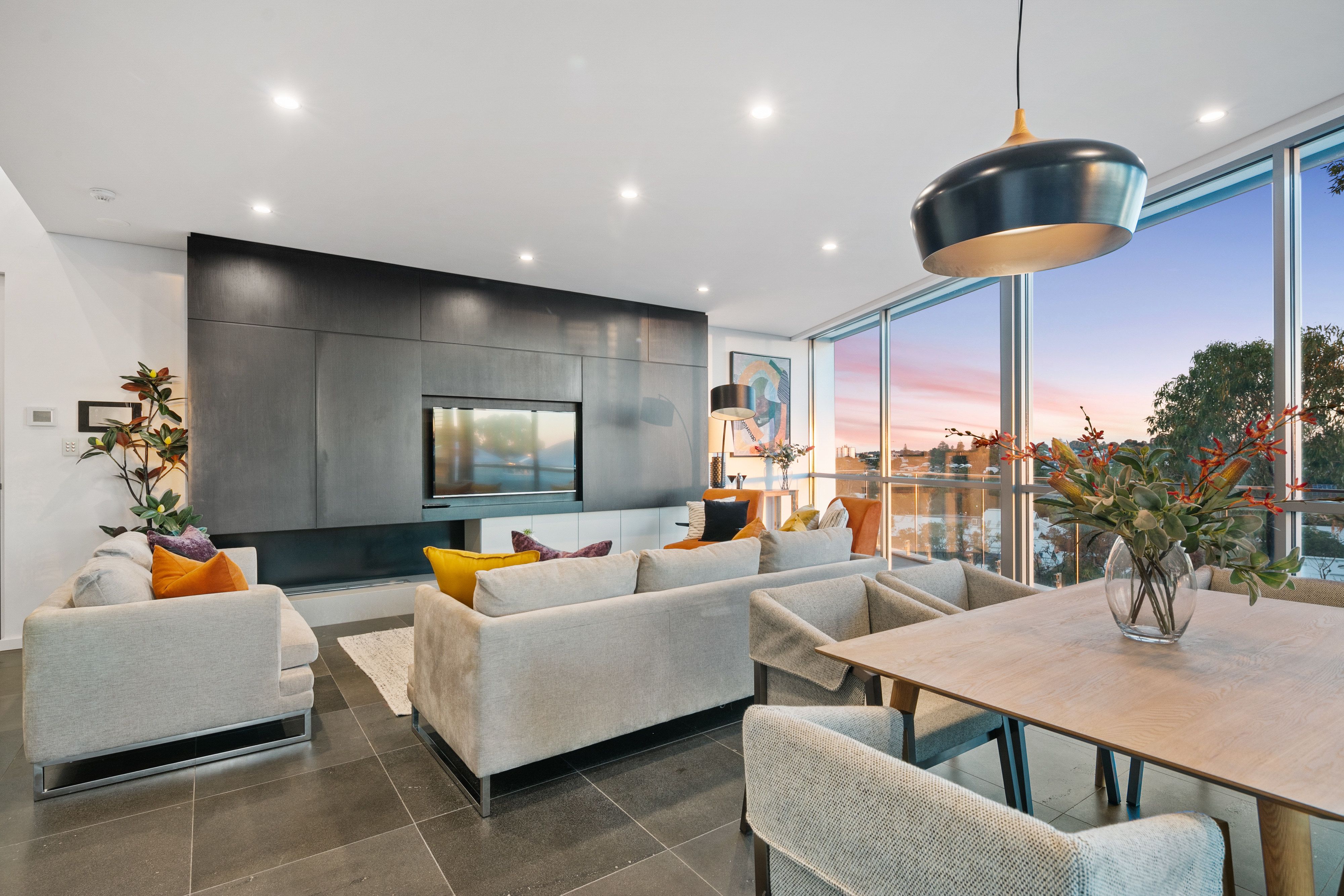 Magnificently finished with elegant contemporary style including; feature pendant light, lush carpets, full height oversize doors and windows, stone benches, quality tapware, full height tiling and floating vanities in bathrooms, a double rainhead shower and Vovo toilet system in the main ensuite, 55' HD LCD Mounted TV, chic ethanol fireplace, Miele washer and dryer in laundry, built in linen closet, secure parking in underground carpark.