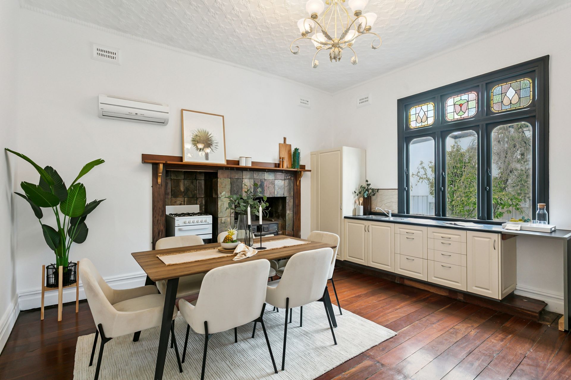 • Character ceilings • High feature skirting boards • Decorative ceiling roses • Picture rails • Feature leadlight entry door and rear dining-room panelling • Split-system air-conditioning • Gas-bayonet heating • Instantaneous gas hot-water system • Side drying courtyard - with a clothesline • Gated rear lean-to/storage area • Side-access gate to the backyard • Weatherboard exterior